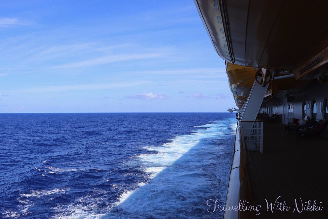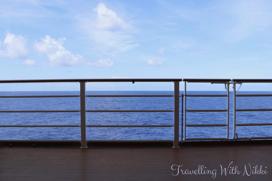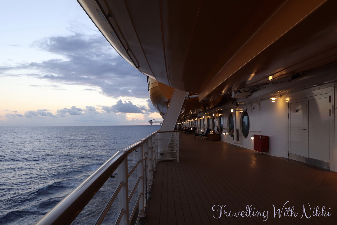 We spent the next two hours back in our stateroom and enjoying the view from our giant verandah. I’m still so happy that I saw it available online one night and was able to swap from our original stateroom that we booked a few doors away. Having this space to ourselves really was amazing and it was one of my favourite places to be whilst on the Disney Fantasy. After having a shower and getting ready for the evening, we walked around Deck 4 as it was such a perfect evening out.