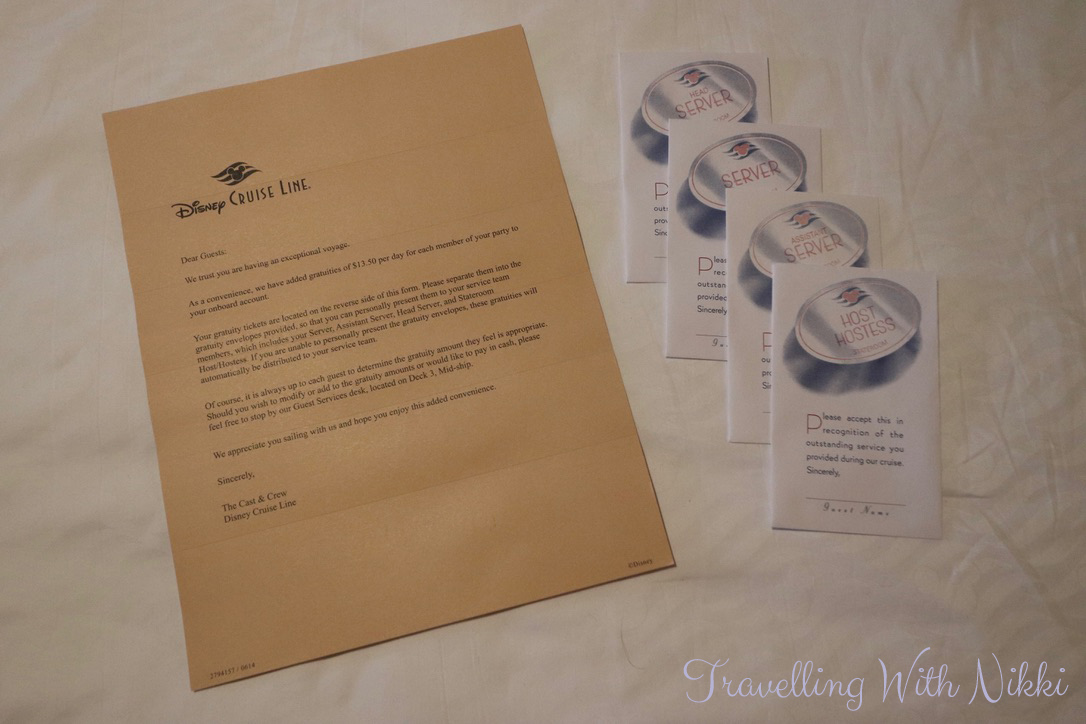 After riding the Aquaduck, we grabbed a cup of tea before heading back to our stateroom. One of the first things I did was to carefully pack away our Animator’s Palate drawings – I bring a cardboard folder on every cruise to keep everything flat and undamaged and to make it easier to travel home. Our tip envelopes as well as luggage tags (we did not need these however as we always do Express Walk-Off) had also been left for us ready for the next day. I also remembered that I had not picked up a Personal Navigator yet for the next day so quickly ran down to Deck 3 to collect one.