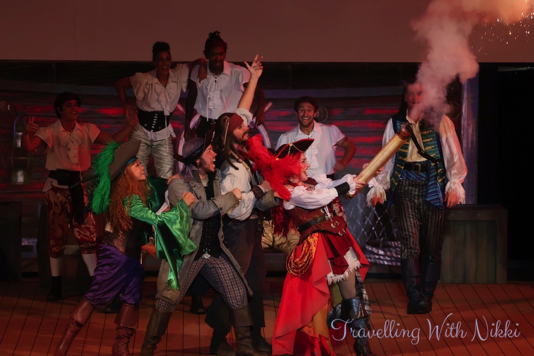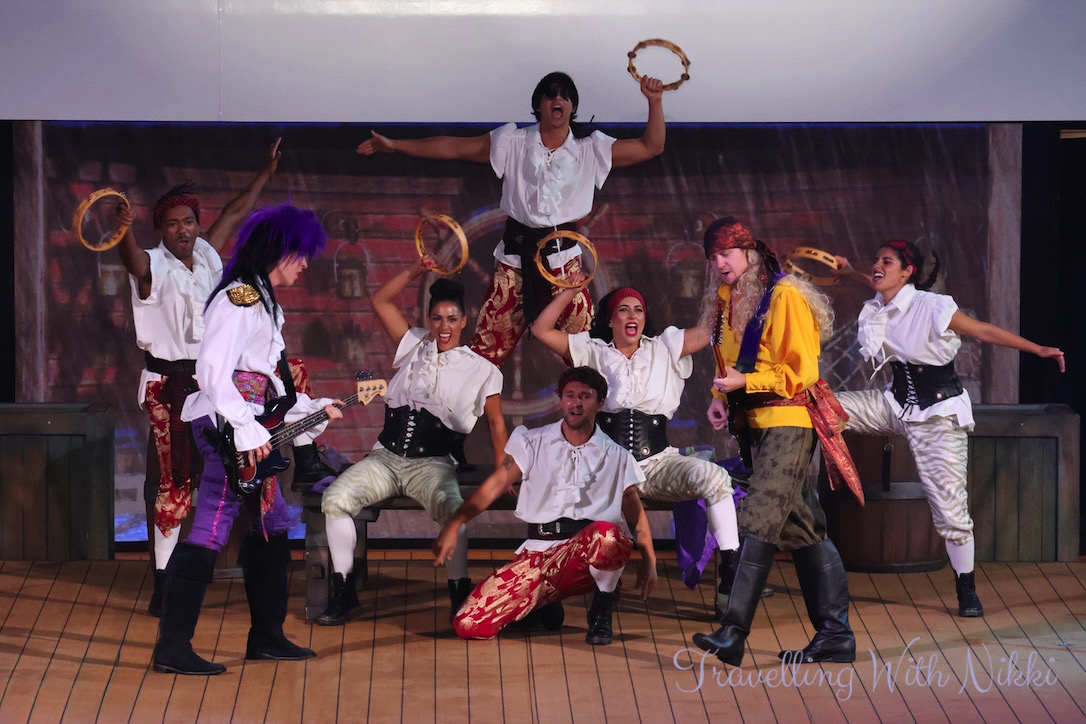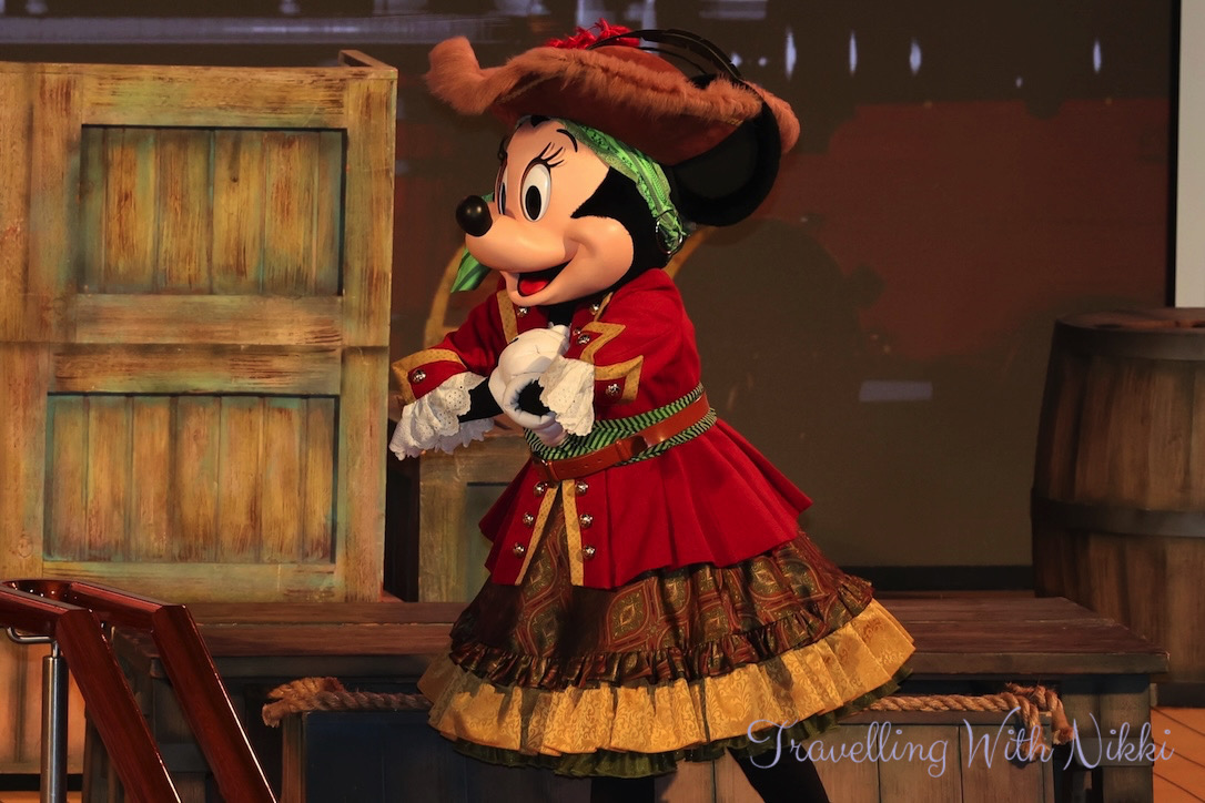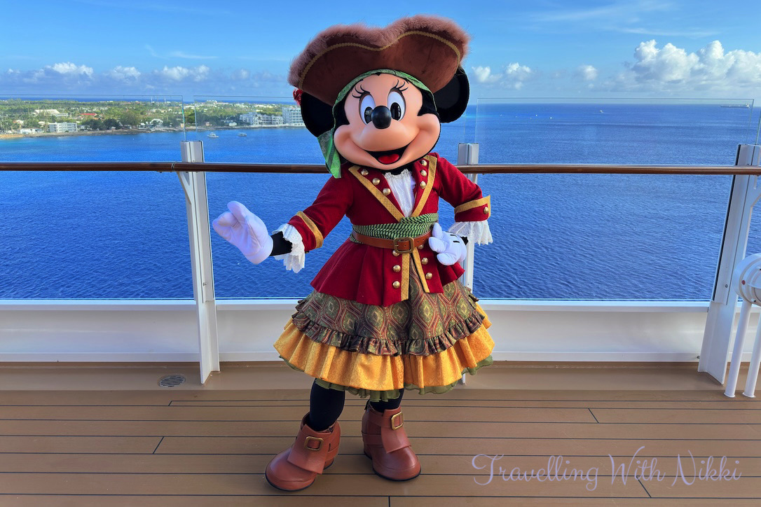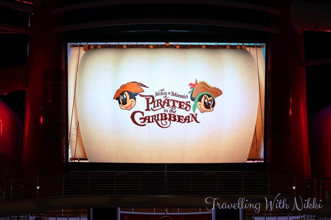 Once we got back to our stateroom we had a shower before enjoying a glass of Prosecco on our verandah as we slowly sailed away from Grand Cayman. Once I was dressed, I made my way back up to Deck 12 to grab a good spot ready for Minnie and Mickey’s Pirates in the Caribbean which was due to start at 7:30pm.