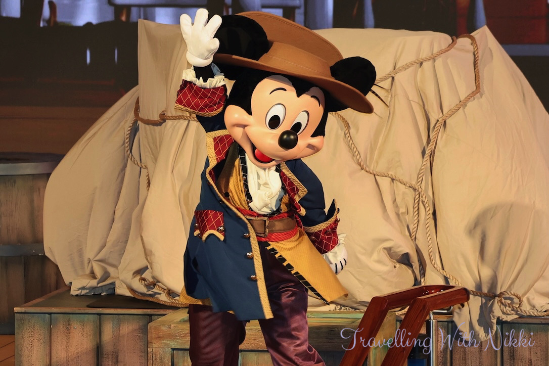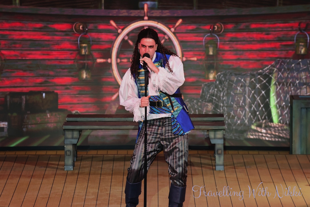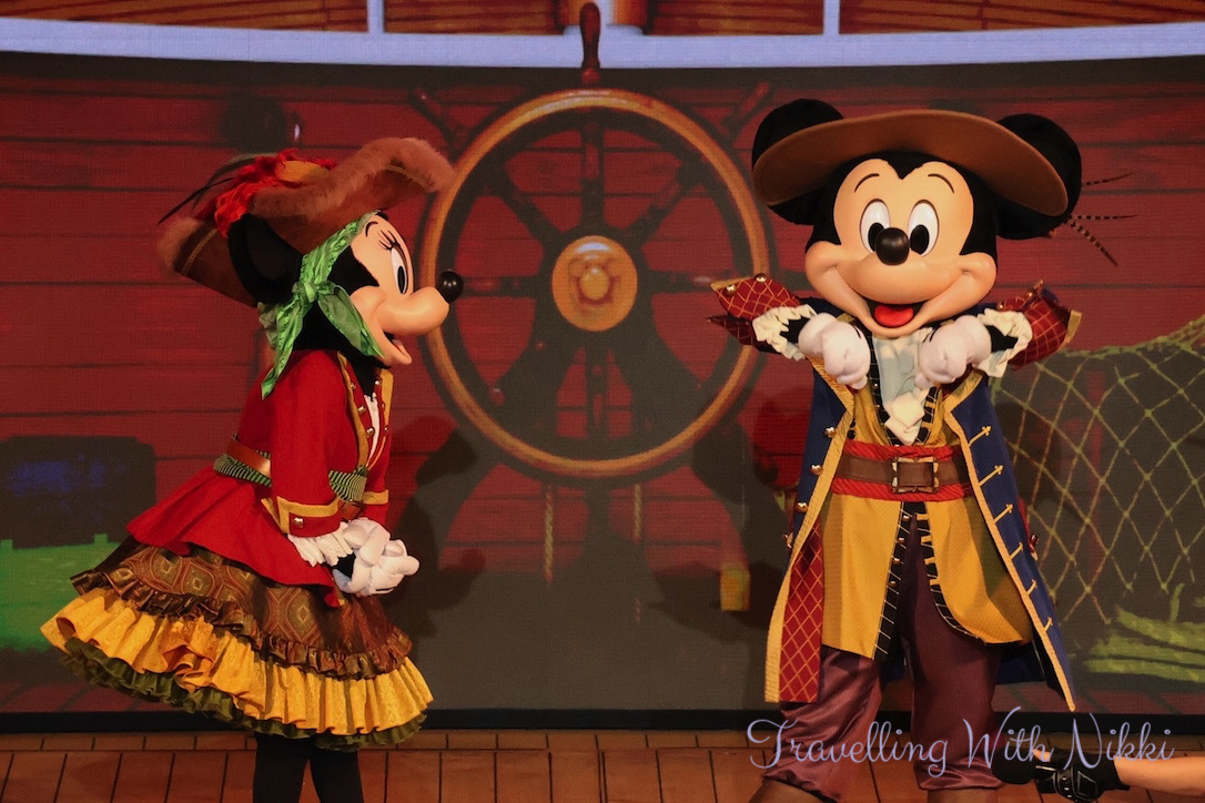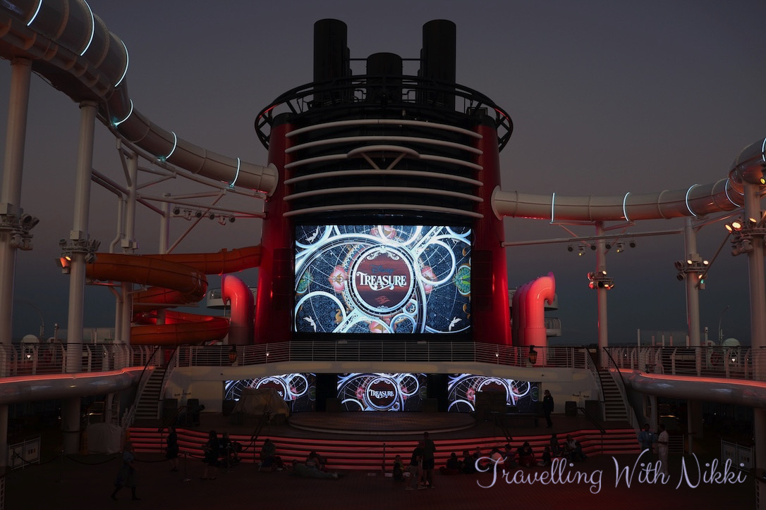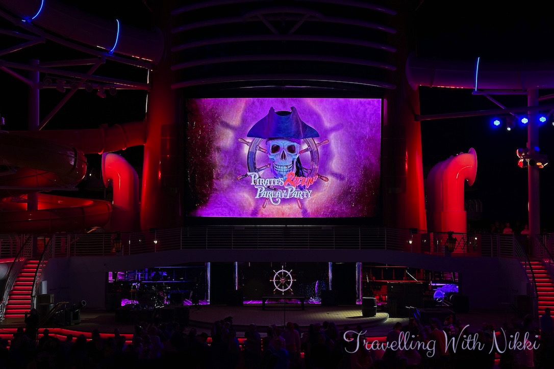 Once we got back to our stateroom we had a shower before enjoying a glass of Prosecco on our verandah as we slowly sailed away from Grand Cayman. Once I was dressed, I made my way back up to Deck 12 to grab a good spot ready for Minnie and Mickey’s Pirates in the Caribbean which was due to start at 7:30pm.