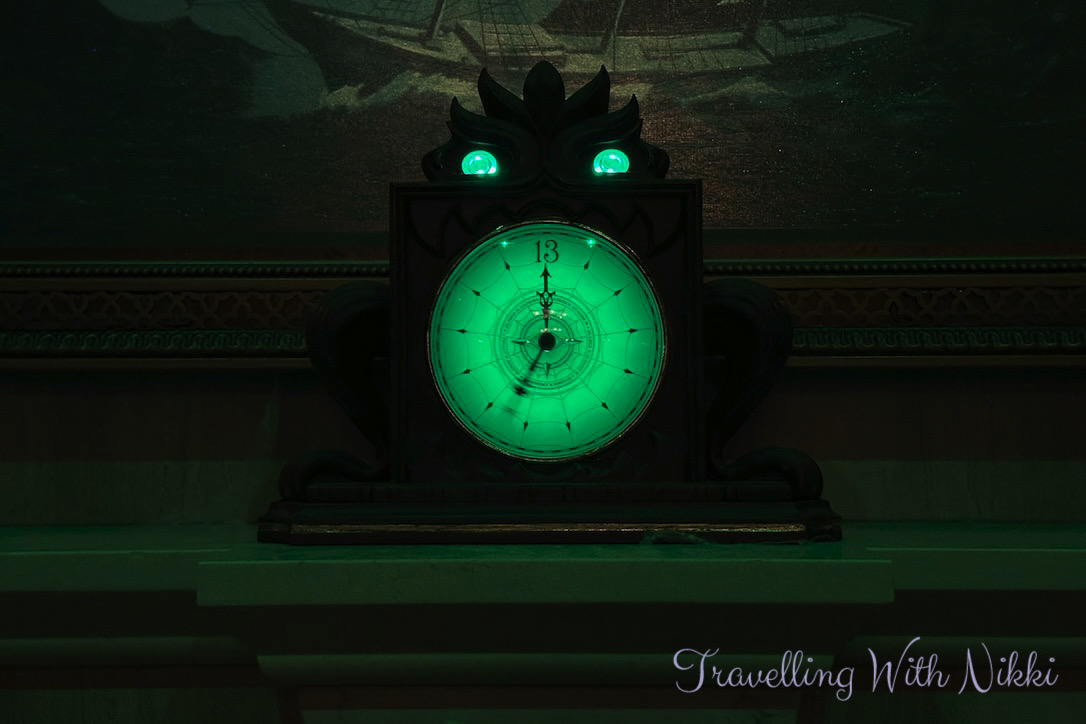 After the deck party we made our way down to Deck 3 to spend a little bit of time in the incredible Haunted Mansion Parlor. Everything that you have heard about this bar is true and it seemed that Pirate Night was a great time to visit as it was the quietest we had seen it since boarding the ship. I was already looking forward to visiting again the following day during our “Imagineering the Disney Ships” tour to look at all of the many details during the day as it is impossible to take them all in during one visit.