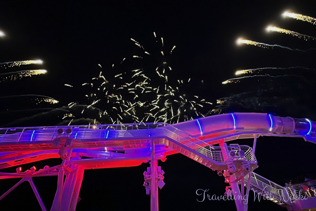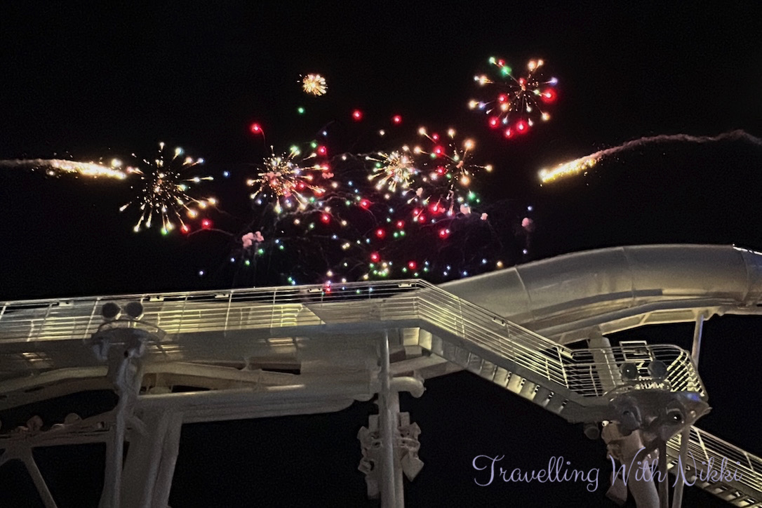 After leaving the Haunted Mansion Parlor we headed back up to Deck 12 to grab the same spot as we had done earlier in the evening ready for the Pirates Rockin’ Parlay Party at 10:15pm which is one of the best deck parties across the entire Disney Cruise Line fleet. We knew that it was going to be busy on deck as everyone wants to see the fireworks so we did not mind waiting once again to ensure we had a good view.