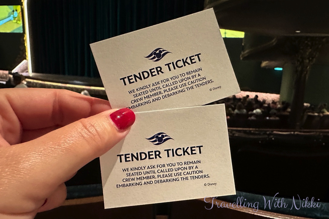 As soon as we had finished our breakfast, we walked back down to our stateroom to collect our bags before we made our way to the entrance of the Walt Disney Theatre on Deck 3 to join the line to wait for a tender boat to the shore. On our last cruise that visited Grand Cayman, we did not need to do this as we simply waited for open tendering but on this cruise we had plans on the island and wanted to be off the ship as soon as possible.