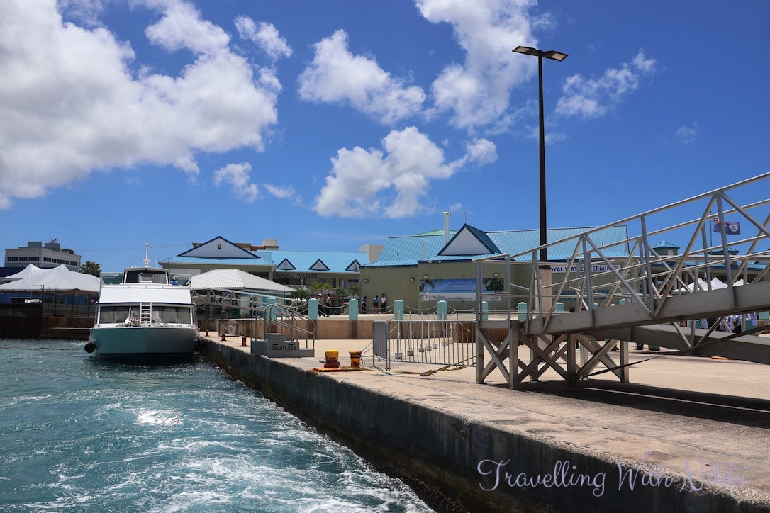 We showed our photo ID’s (we both used our driving licences) as well as our Key to the World cards to enter the Royal Watler Cruise Terminal where there was only a short line waiting for the next tender boat back to the ship and we were given cold towels whilst we waited which felt incredible as it was so hot out that afternoon.