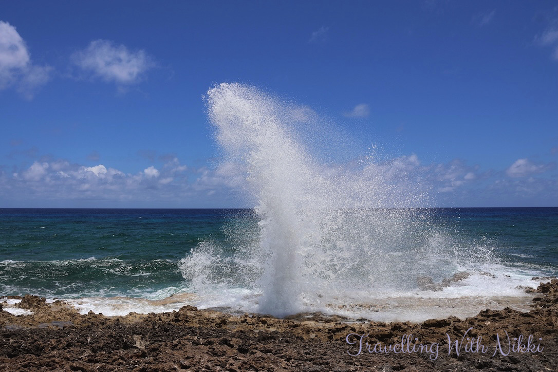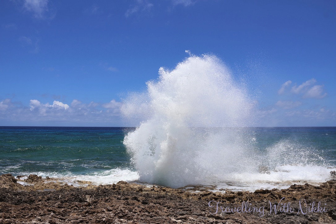 Our next stop was The Blowholes which were just a short two minute drive further along Sea View Road and amazingly we had the place all to ourselves which we were definitely not expecting. After walking down a short staircase from the road, this is where you can watch the waves crash against the rocks shooting seawater up high into the air. It was a little windy that day which made the Blowholes even more impressive to watch and we stayed there for about ten minutes before we continued on with our day.