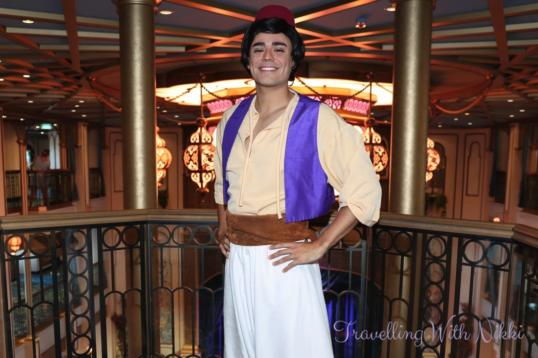 As our all ashore time was not until 10:30am that day, we still had a little while to go before we reached Grand Cayman so after having a shower and getting dressed, we walked down to the Grand Hall where we began our morning by meeting some characters. After being one of the first in line to meet Aladdin at 9:00am on the Deck 5 Balcony, we quickly ran down to Deck 4 to meet Chip and Dale who were also out at the same time.