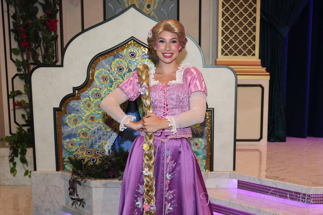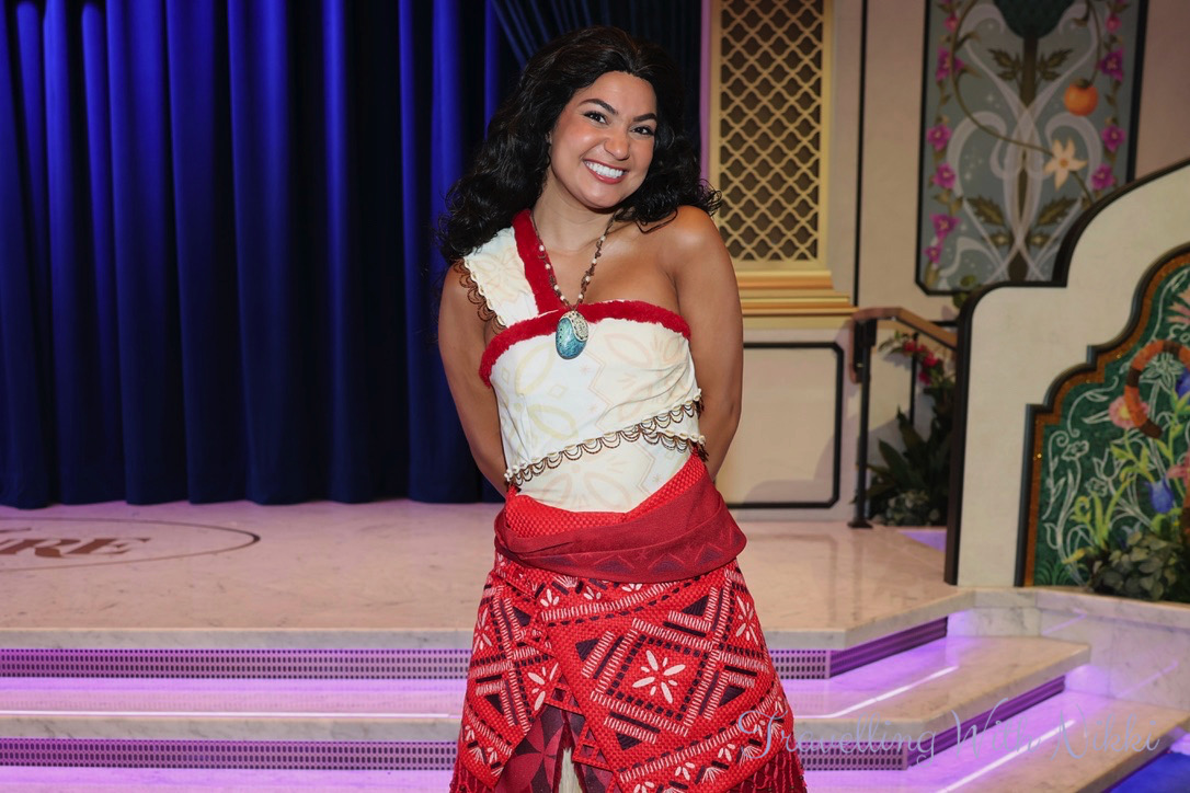 On our cruise we were able to meet Princess Jasmine, Moana, Belle and Rapunzel (though the line up is always subject to change on each ship as well as each sailing) and as the line moved so quickly that morning, we met all four of them in less than seven minutes!