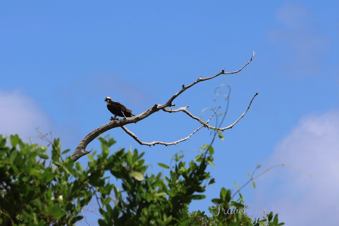 We continued our journey by walking along the lake where we saw a Green Iguana climbing one of the trees, an Osprey sitting high up in one of the branches on the other side of the water along with another Blue Iguana who was sitting in the shade under one of the nearby picnic benches.