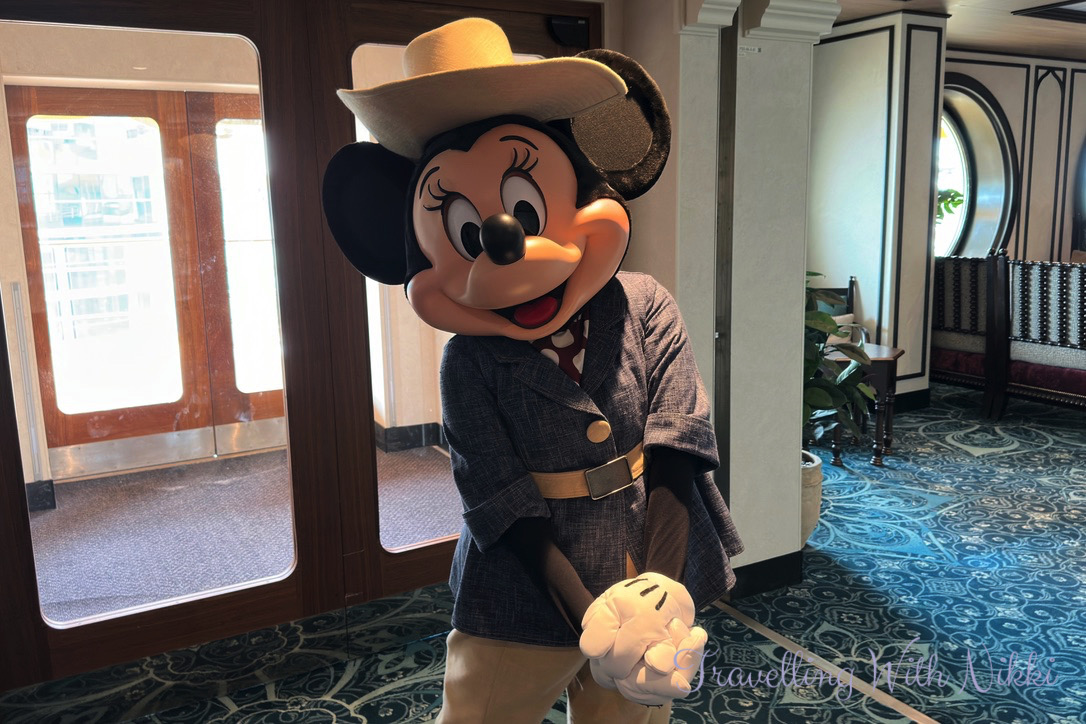 Then just when I thought that I could not smile any harder if I tried, we literally bumped into Voyager Minnie on Deck 4 as we turned and walked around a corner. Minnie’s adventurer outfit is exclusive to the Disney Treasure and I had been really looking forward to meeting her in it but was definitely not expecting it to happen as quickly as it did – it was just incredible timing that we could not have planned even if we tried!