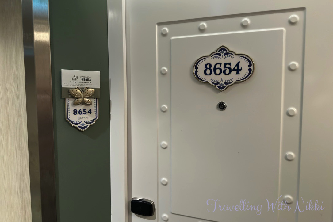 Once we had finished eating our lunch, it was already 1:30pm which meant that all of the staterooms onboard were ready at this time. It was a familiar walk down to 8654 on the starboard side of Deck 8 to drop off our bags that we had with us as it was the exact same room that we had stayed in on the Disney Wish as we had loved the location so much. We also met our Stateroom Host Aristo who introduced himself and who looked after us and our room so well during our week onboard.