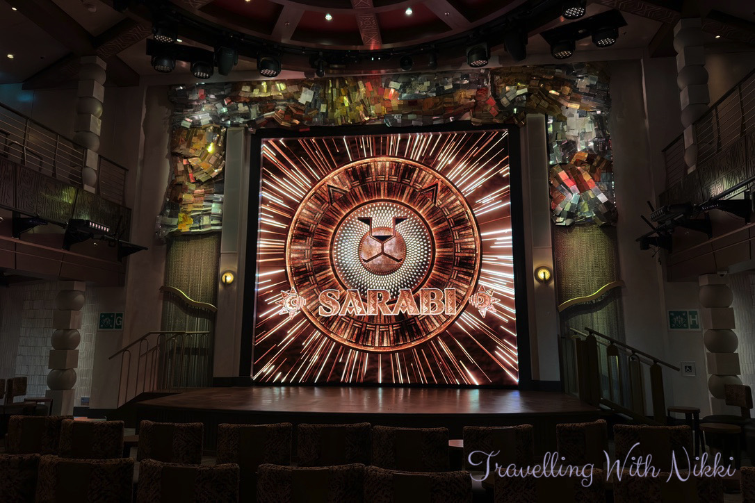 We also stopped by Sarabi which is one of the entertainment venues onboard that is inspired by The Lion King (Sarabi is the name of Simba’s mother) and we had fun trying to find all four of the Hidden Mickeys in the proscenium around the stage before taking a quick peak into the incredible albeit very busy and crowded Haunted Mansion Parlor.