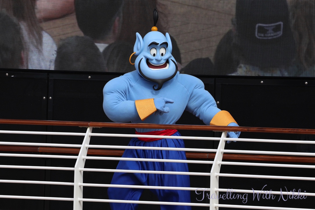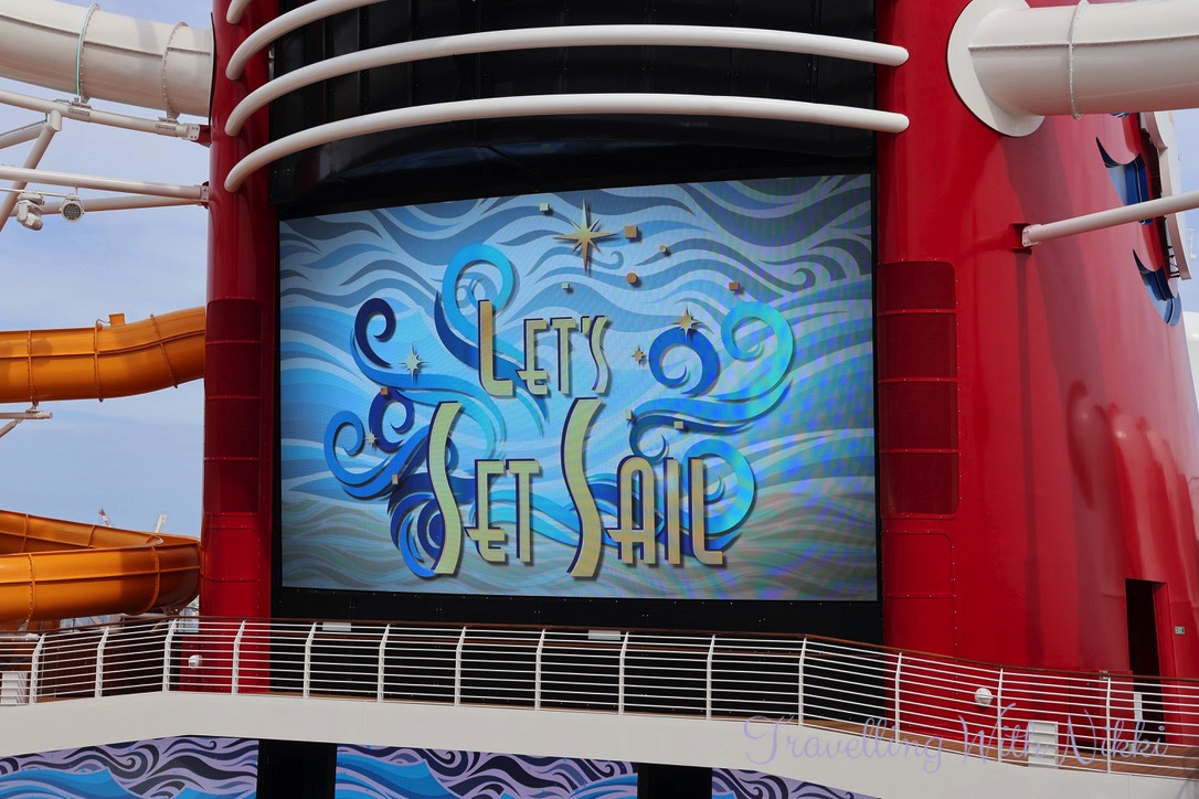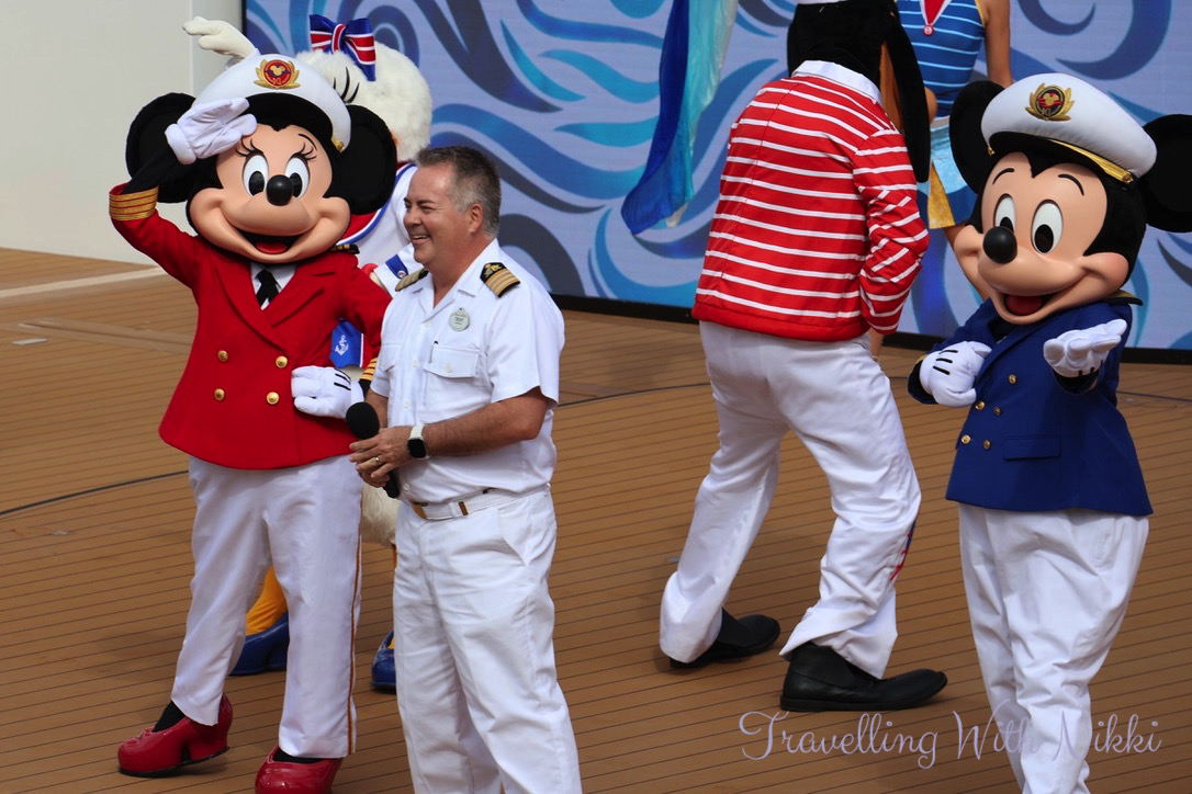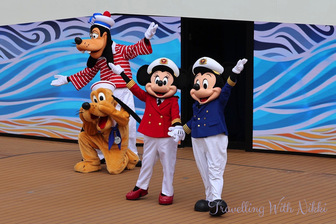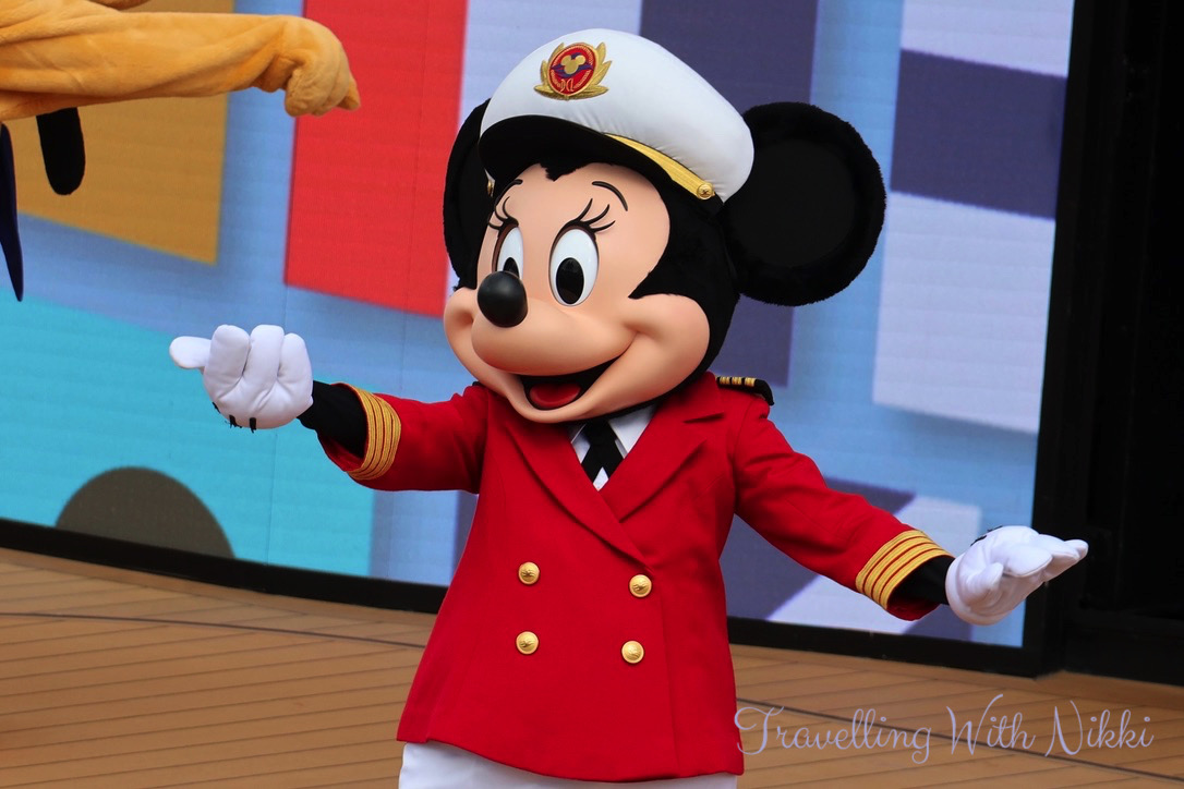 Before we even knew it, our Cruise Director Trent – who we had not seen since our very first cruise on the Disney Wonder all the way back in 2013 – asked Captain Minnie to start the countdown to sound the ship horn. I have heard the “When You Wish Upon a Star” horn so many times over the years and I will never ever get bored of hearing it!