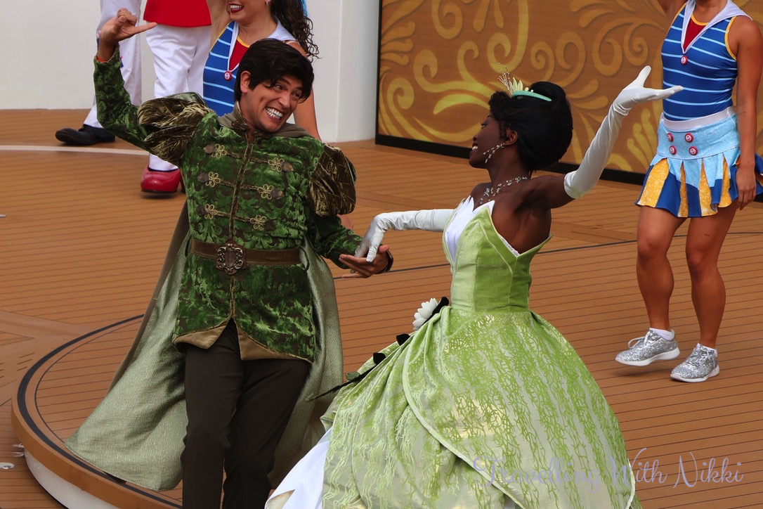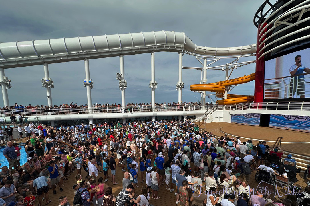 It was just as chaotic trying to leave Worlds of Marvel and attempt to run up the stairs from Deck 4 to Deck 12 but thankfully I managed to get a spot ready for Let’s Set Sail. The weather was also behaving at this time with no thunder or lightning in the area (like there has been several times for us on previous cruises when leaving Florida) meaning we could finally relax and the cruise could officially begin.
