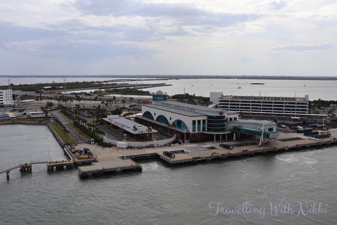 The last time we sailed from Port Canaveral we had dropped our rental car off at Alamo before taking a shuttle bus to the terminal but as this was such a busy day in port – there were six ships docked on this day as well as on the day that we arrived back – we had made the decision to leave our rental car at the parking garage directly next to the terminal building which cost $145 for seven days and you pay for parking on arrival and there is no need to make a reservation beforehand as there are more than enough spaces available.