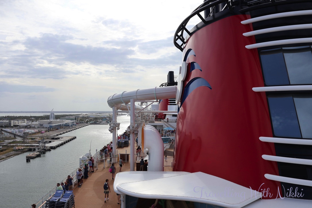 We were Boarding Group 10 (it seems to get higher every cruise that we take as all of the lower groups are now given to anyone who books and pays for Disney Cruise Line transfers from Orlando International Airport or the Walt Disney World resorts to the port) so as we had a little bit of time to wait, our first stop was the outside Observation Deck which is one of my favourite features of sailing from Port Canaveral to take some more photos of the Disney Treasure.