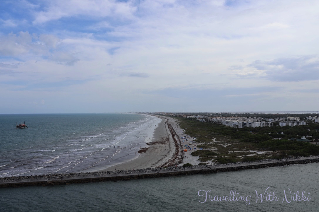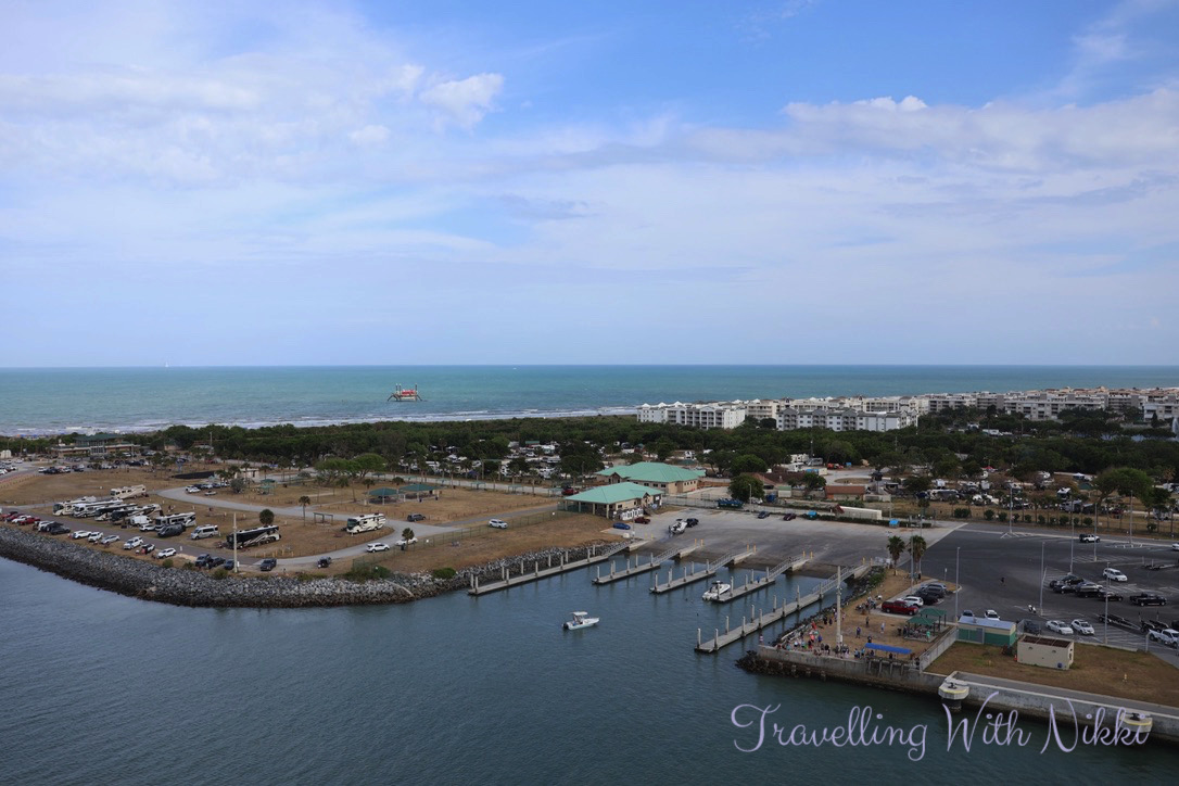 Once we arrived in the Cocoa Beach area, we quickly dropped our bags off at the hotel before driving a few minutes back to Port Canaveral where we watched the Disney Wish sail out on the Friday afternoon on her way to the Bahamas for the weekend. Many people watch the ships from Jetty Park which is much closer to the beach however this also comes with a $15 parking fee whereas we went to Port Canaveral Park instead where you can park for free across the road whilst you watch the ships sail in and out – however you cannot leave your car here when on a cruise as they do not allow overnight parking.
