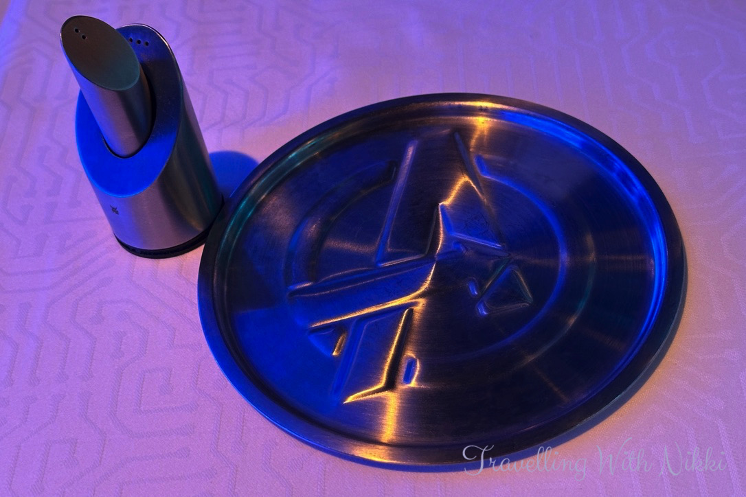 To demonstrate the Quantum Cores that are on each of the tables that can target Pym Particles to shrink or grow just about anything, Ant Man wants to shrink his suitcase so that he can fit it under his bed onboard the ship as well as shrink his towel swan that he made to make it easier to take home but predictably things do not go to plan as he also accidentally shrinks the Disney Treasure in the process! During the meal all of the screens around the restaurant show different clips from the Marvel Cinematic Universe movies and display different character profiles as well as a showcase of various Avengers technology.