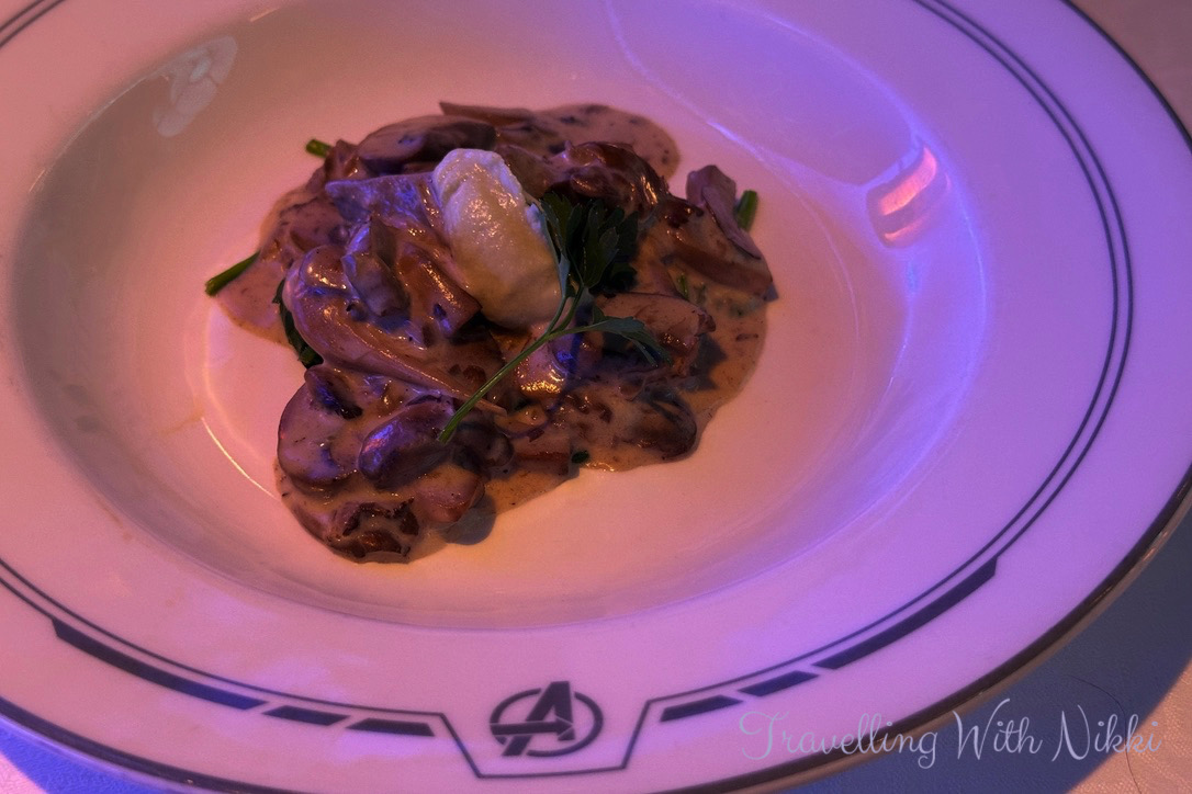 On the first evening at Worlds of Marvel onboard the Disney Treasure, you will experience the Avengers: Quantum Encounter dinner show which is also featured on the Disney Wish which I had loved when we sailed on her – however the new version on the Disney Treasure also includes some updates and changes from our previous experience. We were also grateful to be scheduled such a familiar meal on our first night onboard when we were both feeling a little tired.