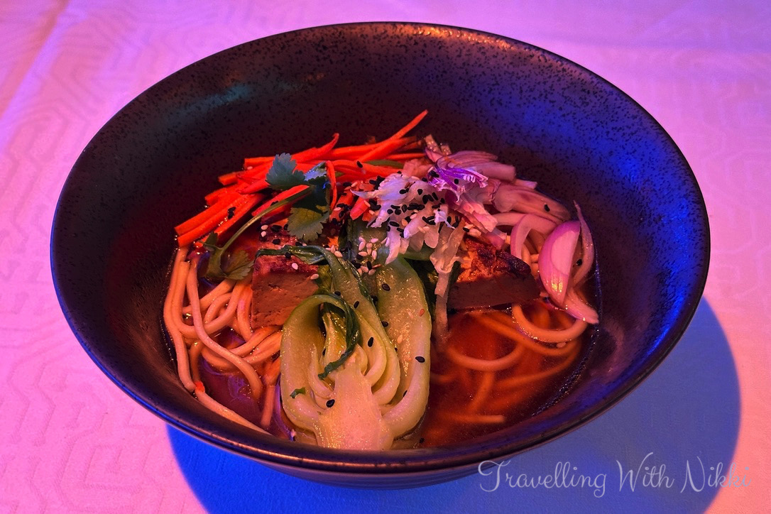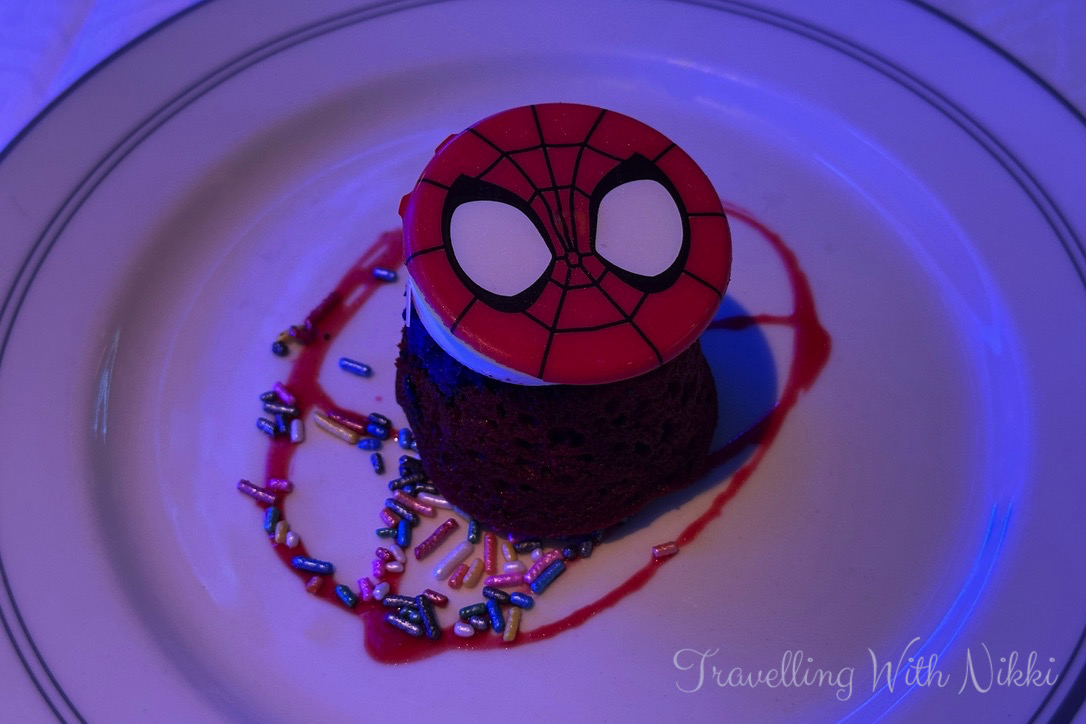 For my first night dinner I ordered the Sautéed Crimini and Oyster Mushrooms to start (which is one of my favourite appetisers across the entire fleet) followed by the White Cheddar and Broccolini Soup and the Shiitake and Tofu Udon for my main course which I struggled to finish as it was such a big portion of noodles. For my dessert I had to order the Spiderman Quantum Cupcake from the kid’s menu because it looked amazing and why not?!