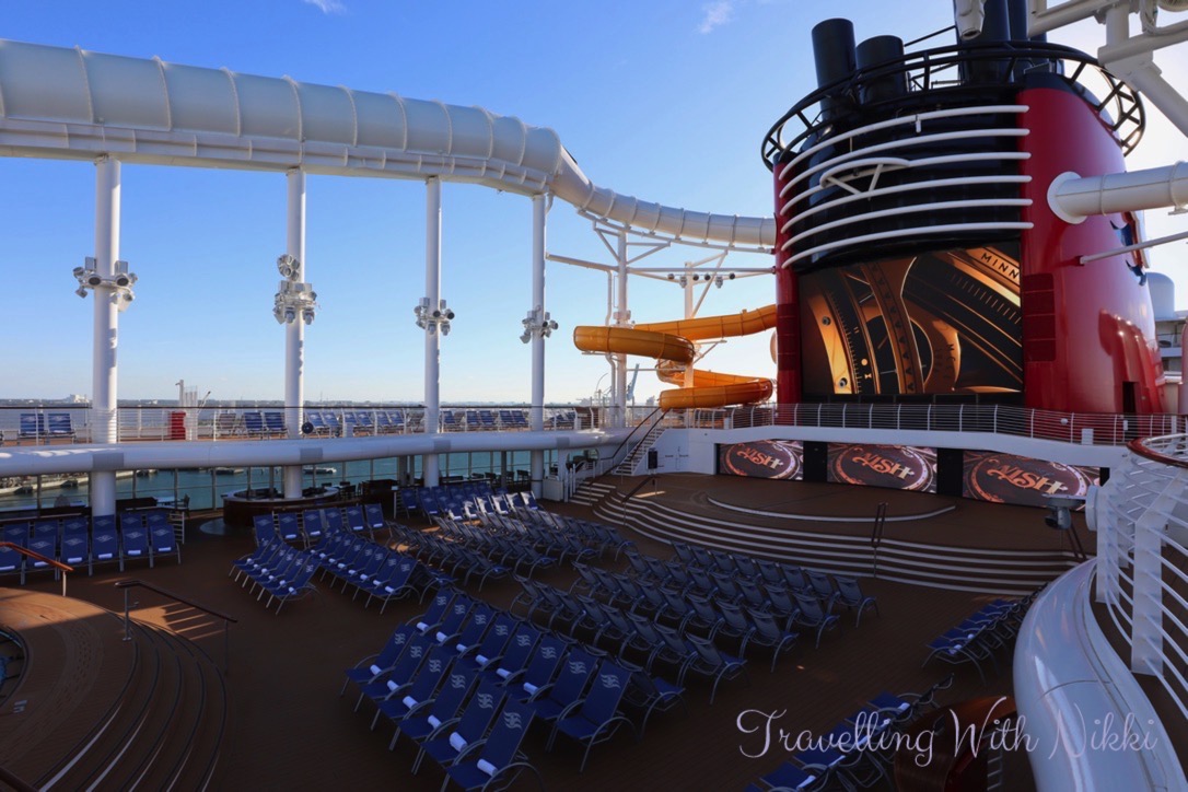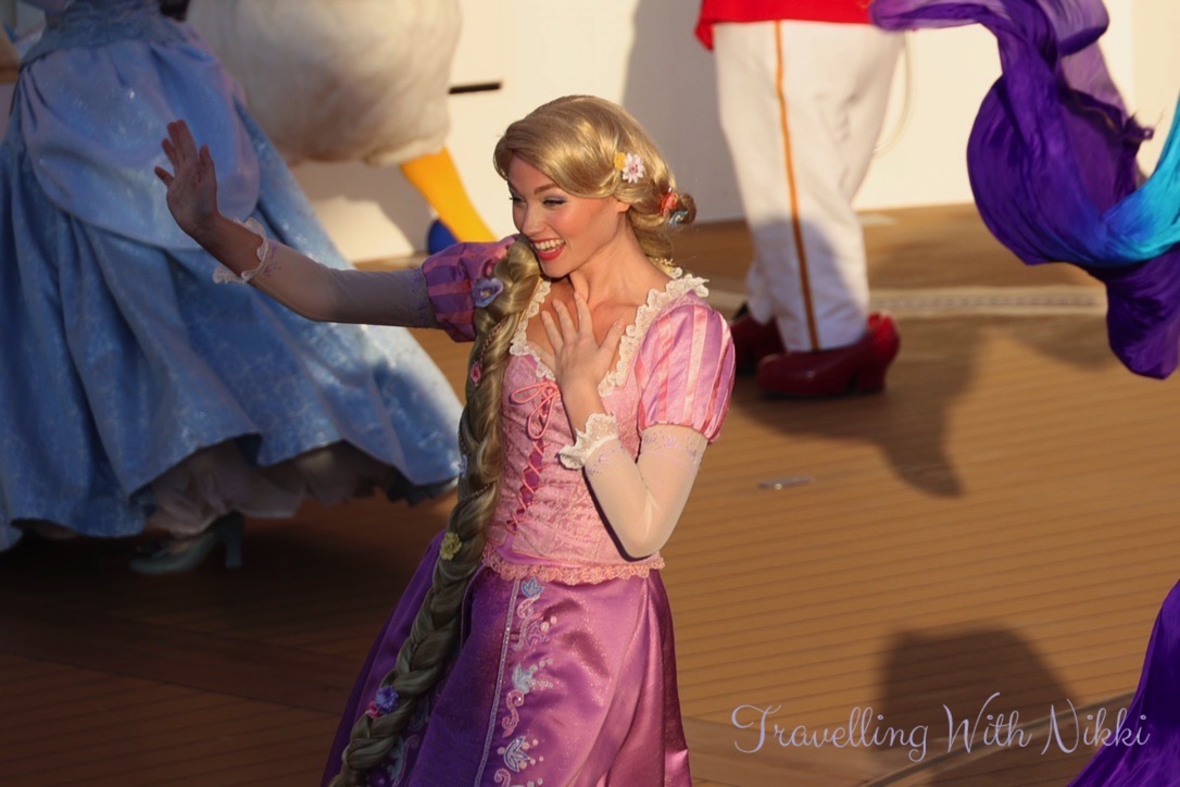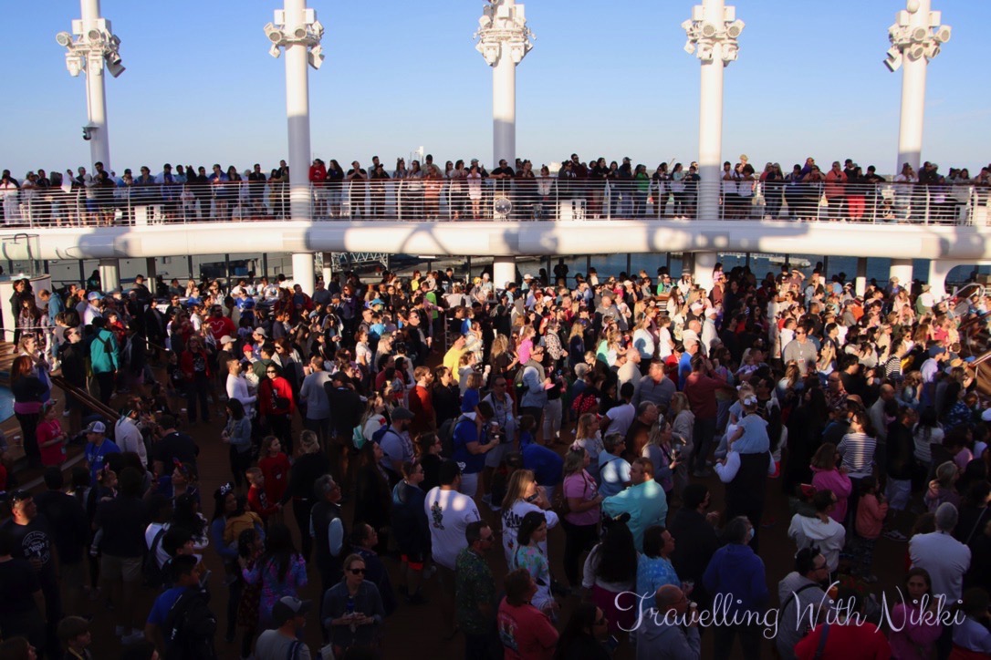 As already mentioned in my previous embarkation day blog, if you want to get a good spot for the sailaway party, you will need to go straight there (and make sure to use the stairs instead of waiting for the elevators) as soon as the muster drill is completed. One of the things that I am most looking forward to on our next cruise which as already mentioned is not with Disney is not having sailaway or deck parties like this where I always feel the pressure to get there early to get a good view – it’s going to be so relaxed that I won’t know what to do with myself!