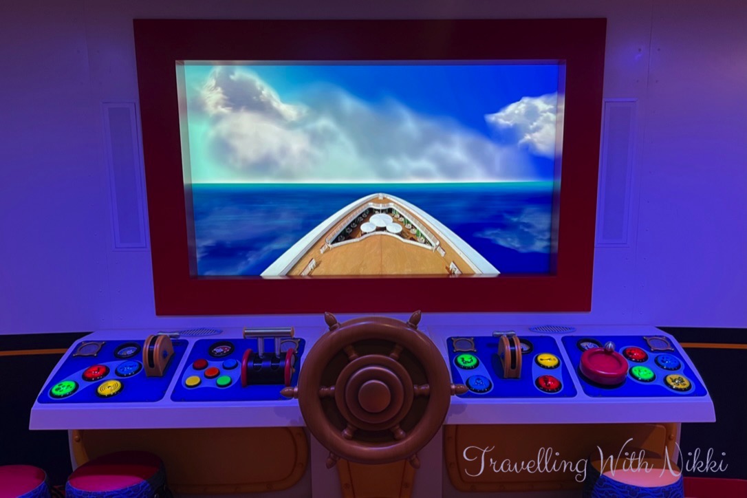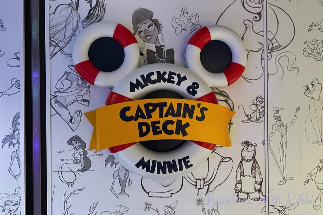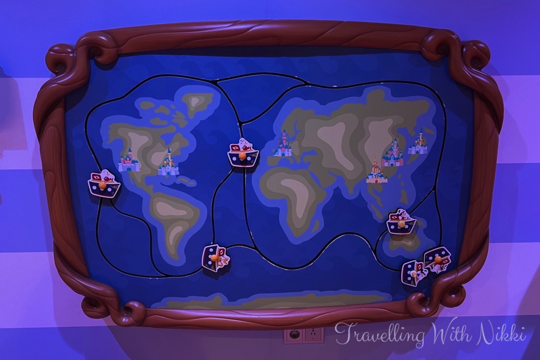 Mickey and Minnie Captain’s Deck is a nautical themed play area for younger children where there is a map on the wall with castles showing the locations of all six of the different Disney Parks around the world as well as six ships even though there is currently only five in the fleet – unless the Disney Treasure is already included as well!