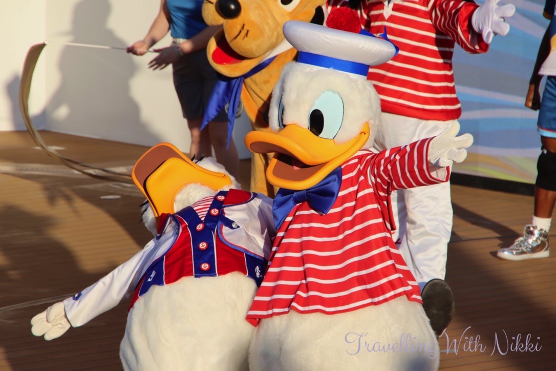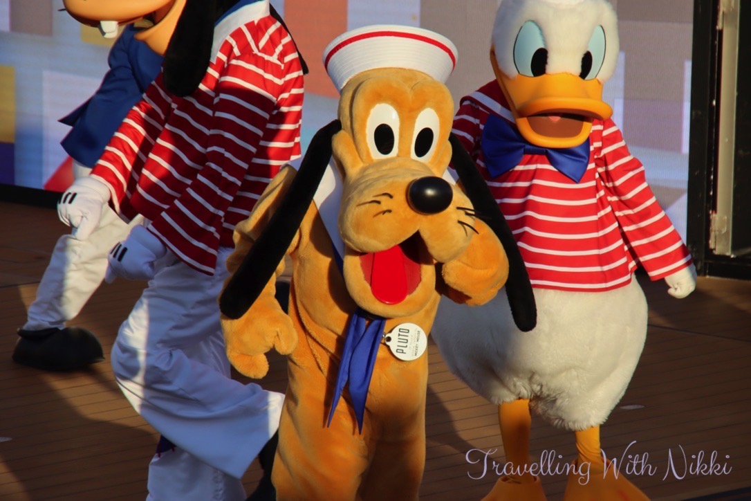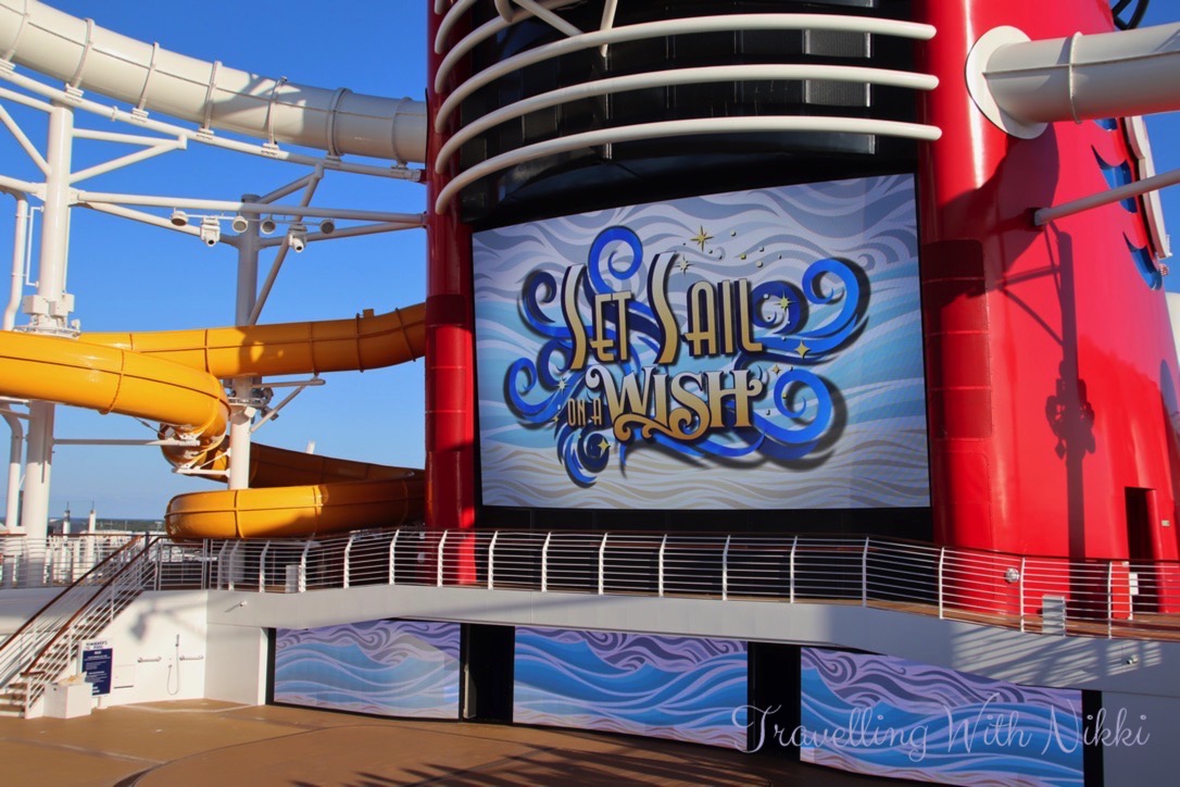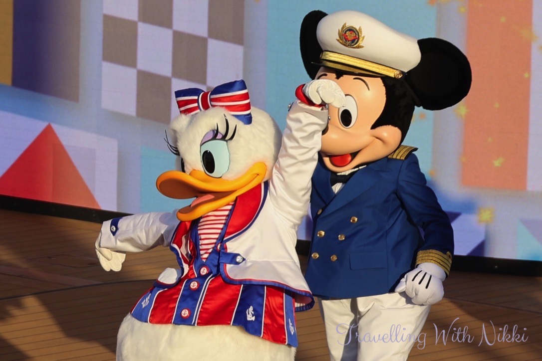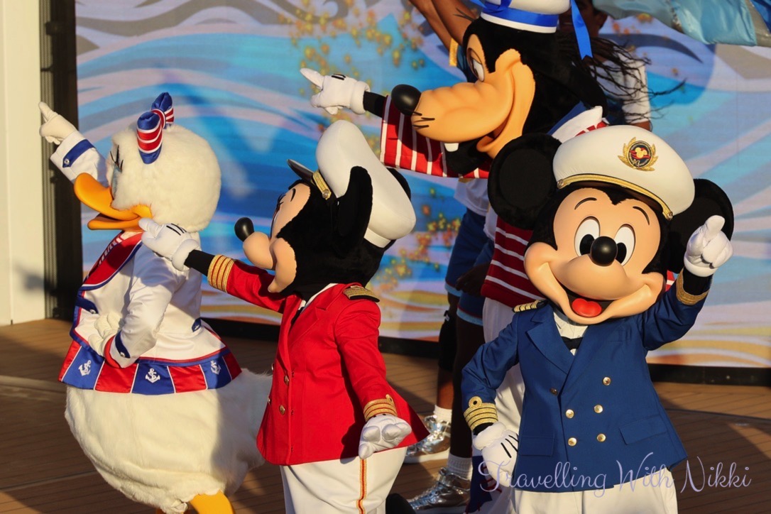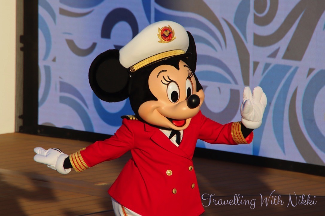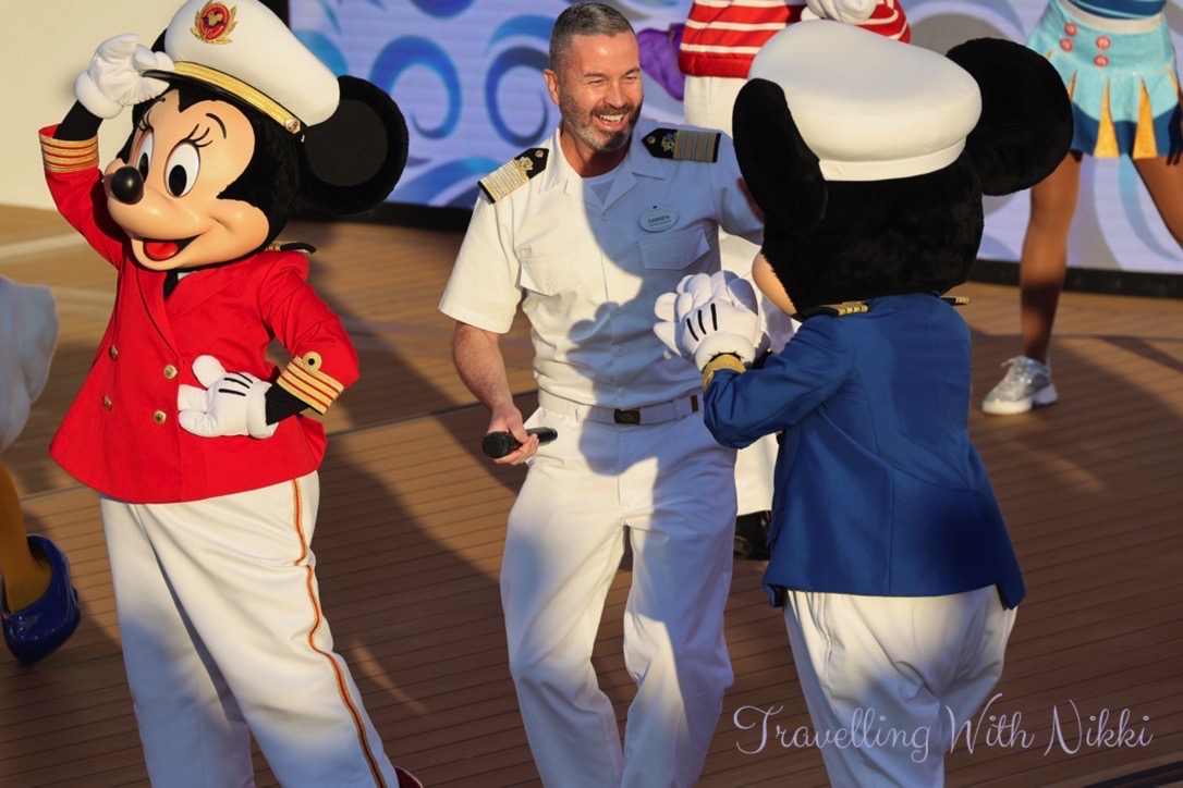 Watching the sailaway party is one of my favourite things to do on a Disney Cruise and I really felt so incredibly grateful to sail on two cruises in a row as watching Set Sail on a Wish twice in five days was an amazing feeling. The only difference to the sailaway party on this cruise was that Darren was now our Cruise Director onboard as Jimmy had disembarked the ship that morning and before we knew it, he was asking Captain Minnie to start the countdown to sound the ship horn to signal that our cruise had begun!
