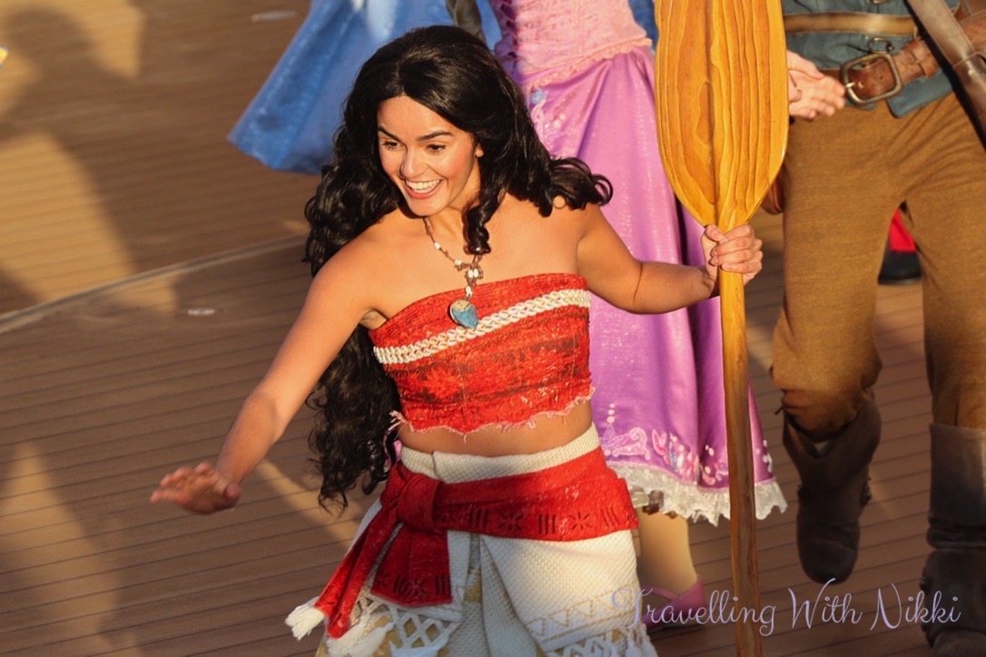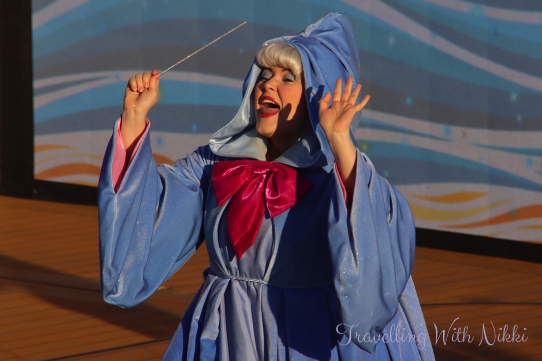 Unlike on our first cruise earlier that week when we watched Set Sail on a Wish from a front row spot next to the Deck 11 stage, on this cruise we had already decided that we wanted to watch it from Deck 12. Even though standing right next to the stage was so much fun and I am so glad that I finally got to do it at least once, it was so in your face that I personally prefer standing on the higher deck to watch from as I find it a lot more enjoyable.