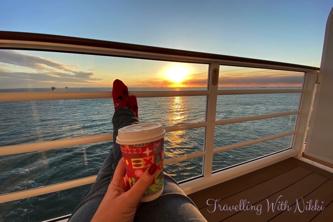 It was 2:30pm when we left the Oceaneer Club and as we had seen everything that we wanted to, we decided to get a coffee to take back to our stateroom where we sat on the verandah just enjoying the peace and quiet (as well as the mobile data) whilst overlooking Port Canaveral as it was very busy everywhere else on the ship. It was such a nice feeling to be able to have a relaxing embarkation day especially as we knew we had a long evening ahead.