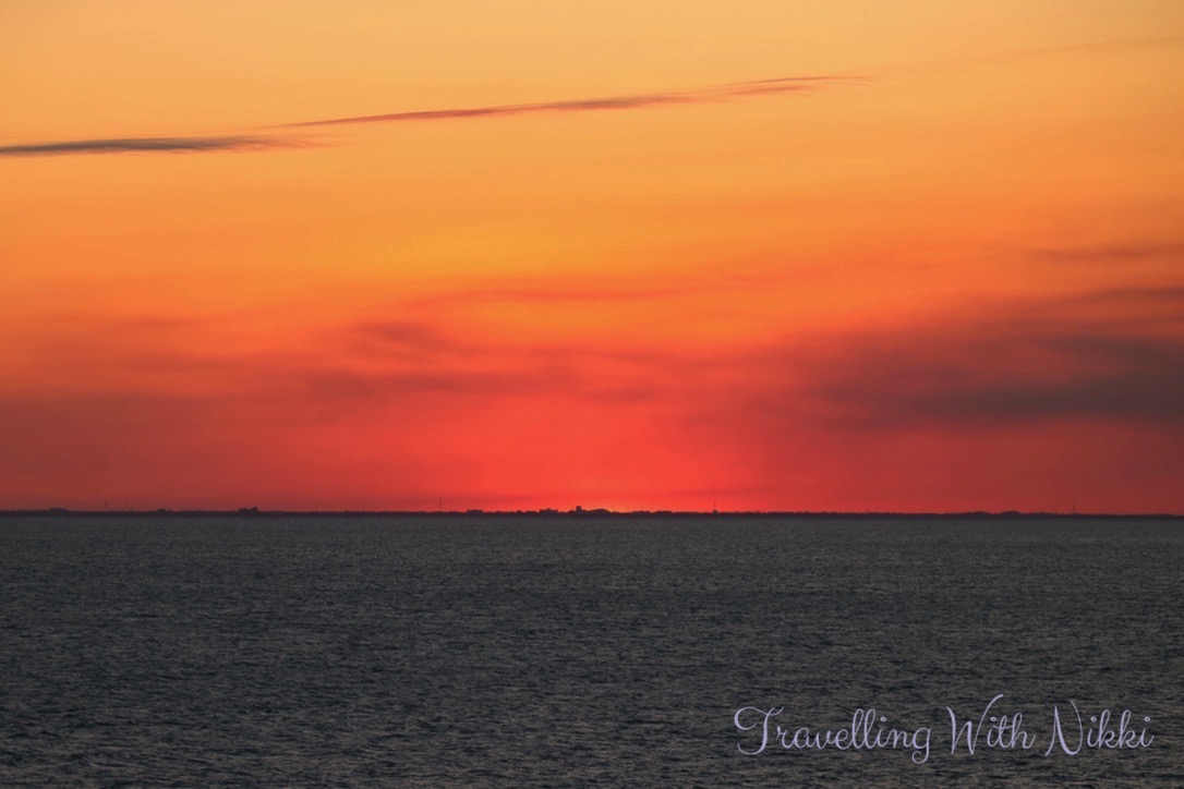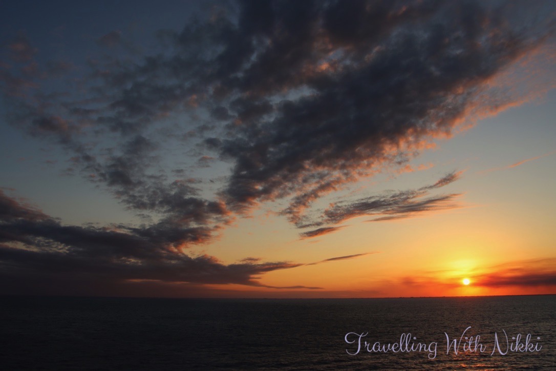 After we had sailed out of Port Canaveral and past Cocoa Beach, we each grabbed a cup of tea and walked back to our stateroom to watch the sunset from our verandah as we still had two and half hours until our dinner at Enchanté. It was really nice to have this time as we did not need to meet any characters, see any theatre shows or go to any of the shops onboard as we had already done everything that we wanted to which is one of the best benefits to sailing on a Back to Back cruise.