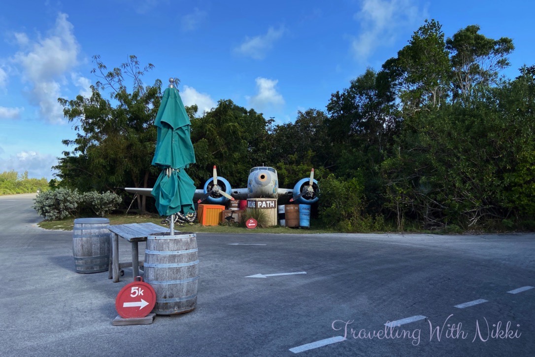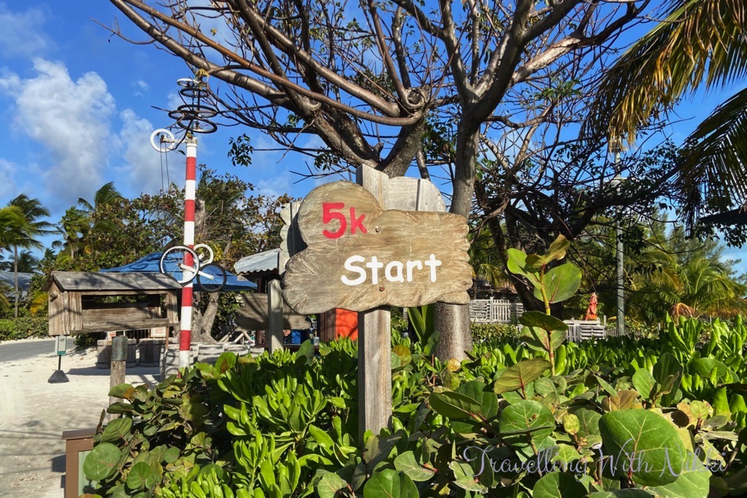 The starting line for the Castaway Cay 5K is located next to the Bike Rental stand and the route takes you out onto the runway, around the entire loop past the Observation Tower, back onto the runway and down to Serenity Bay and back before one final loop past the Observation Tower again and then all the way back to the Bike Rental stand – and there are signs along the whole route pointing you in the right direction.