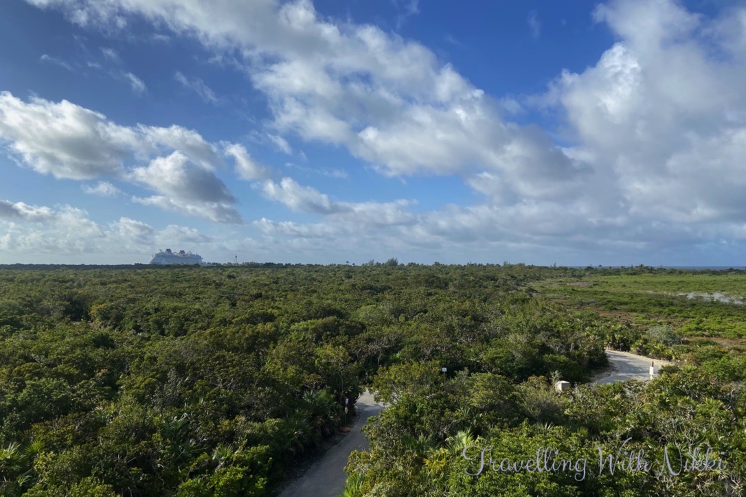 As I cannot run to save my life, I decided on a brisk walk that morning instead as I can happily walk anywhere for miles. I even stopped at the Observation Tower (which I had visited for the first time last year on the Disney Dream when I rented a bike) for a few minutes to look at the view of both Castaway Cay as well as the Disney Wish in the distance – but I had to make do with a photo of the ship taken with my phone as there was no way I was carrying a big camera and zoom lens around with me for the duration of the 5K!