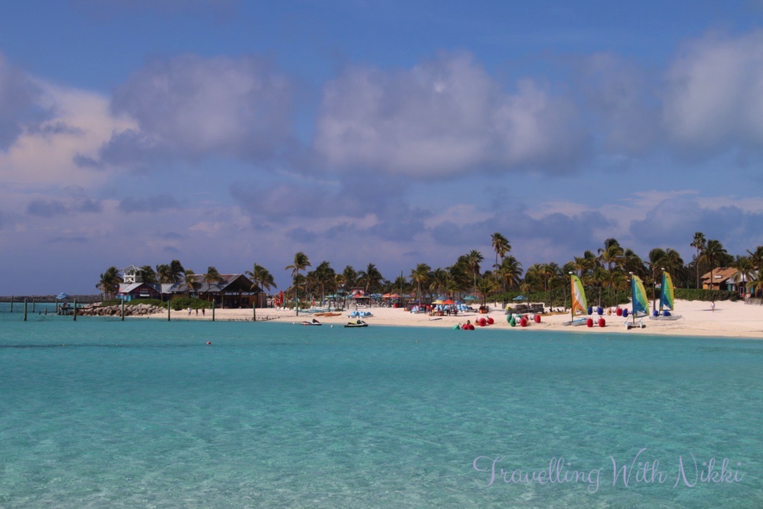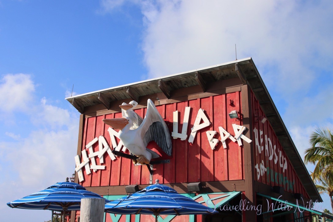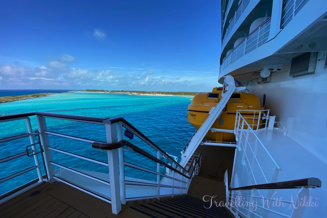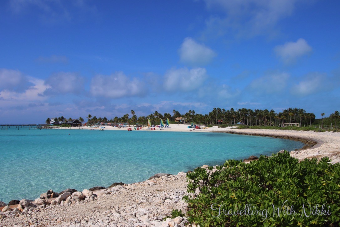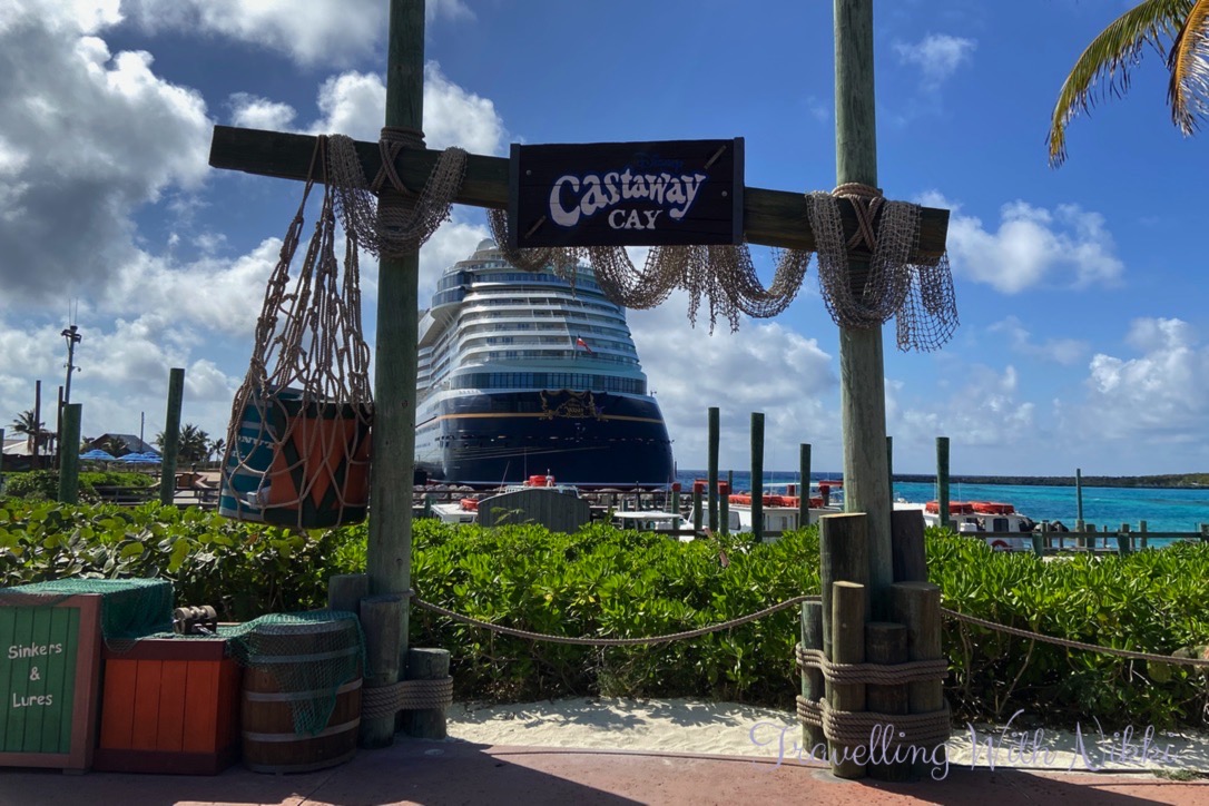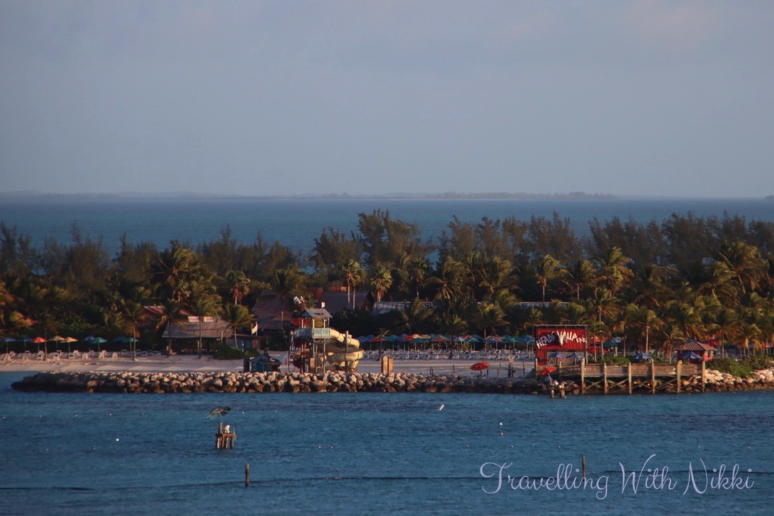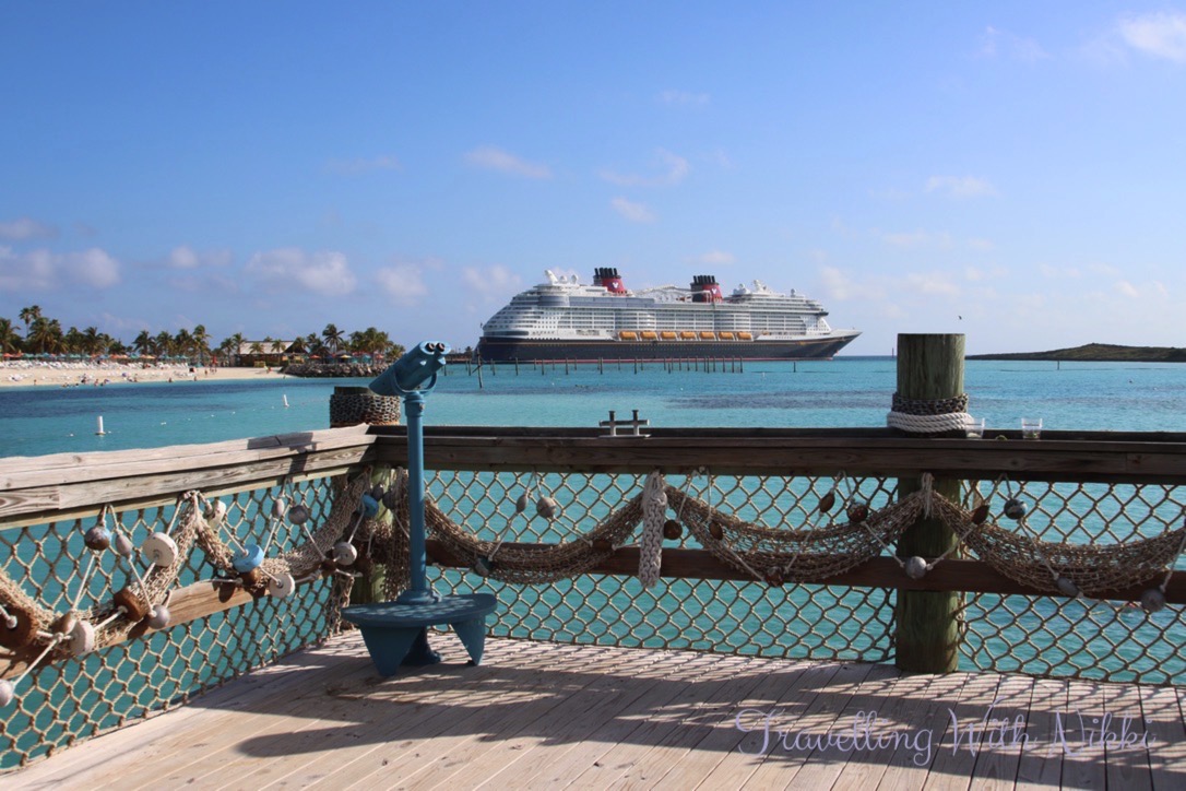 One of our favourite things to do at Castaway Cay is to get a cocktail at the Head’s Up Bar and just sit in the sunshine (or under an umbrella in the shade) and enjoy the amazing view overlooking the snorkelling lagoon towards the ship in the distance.