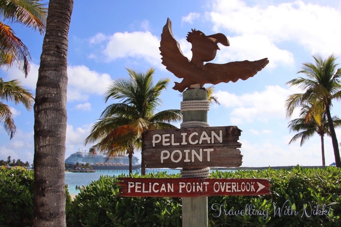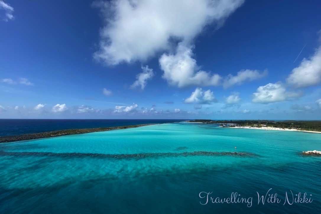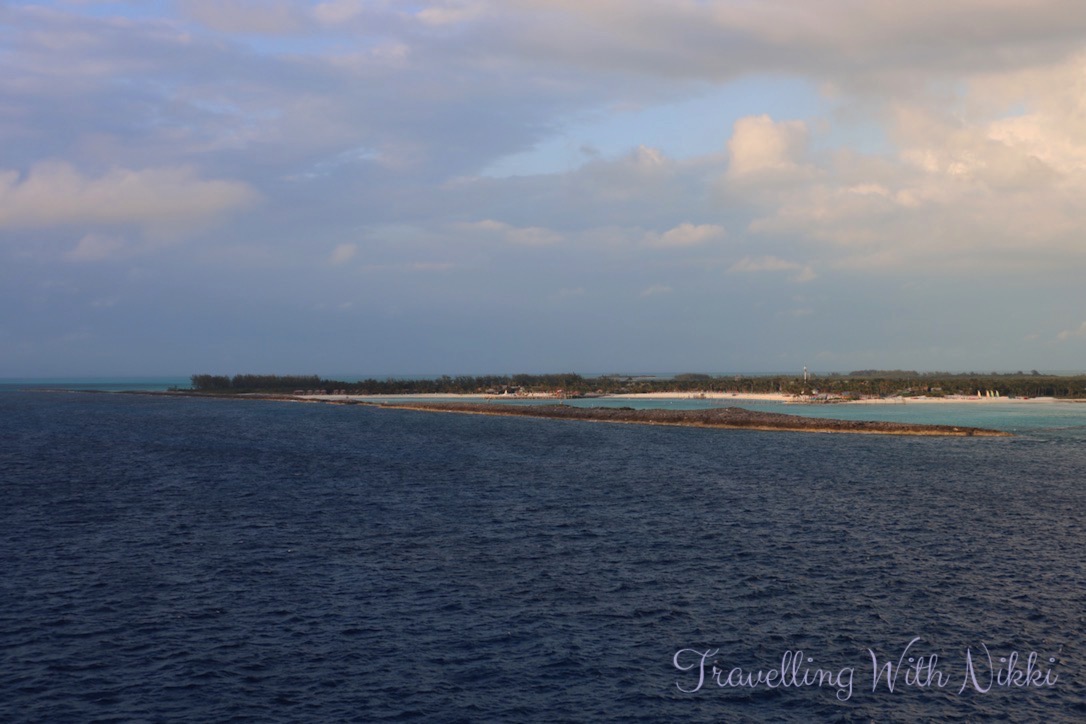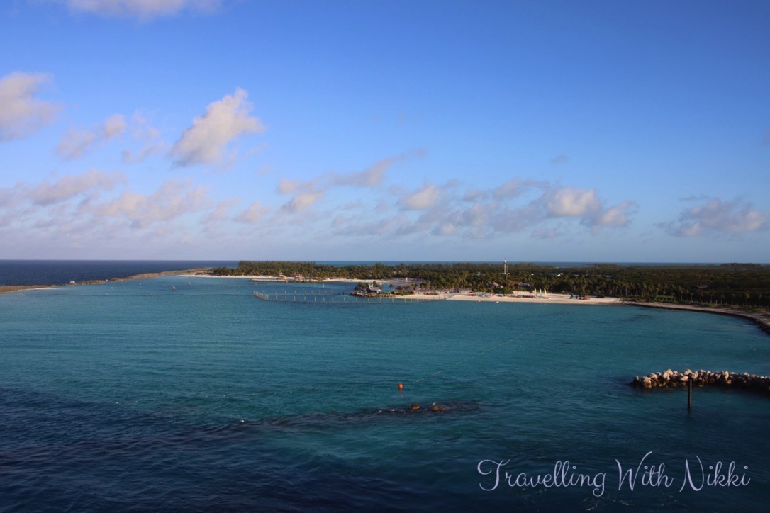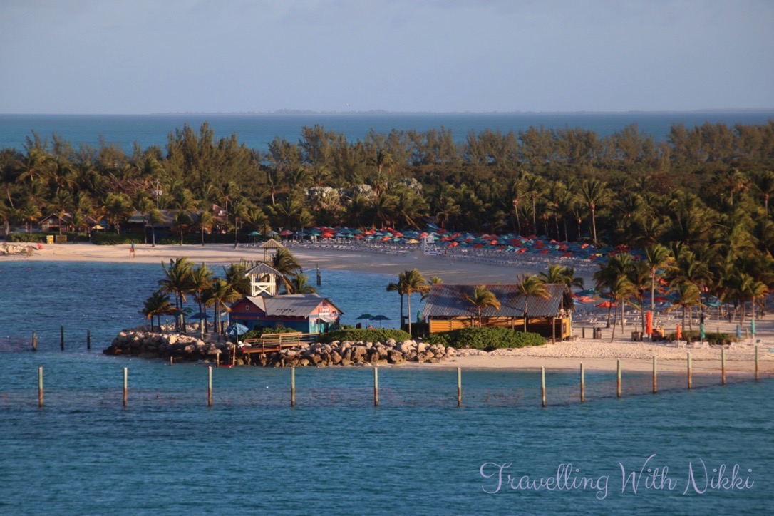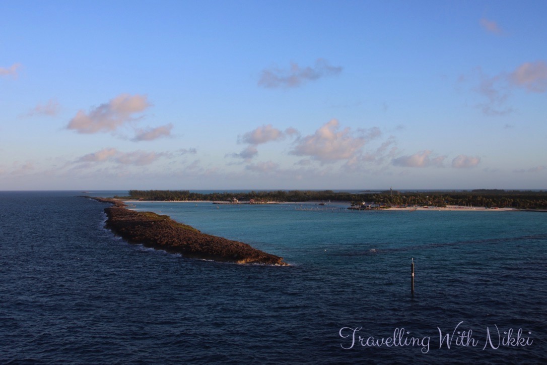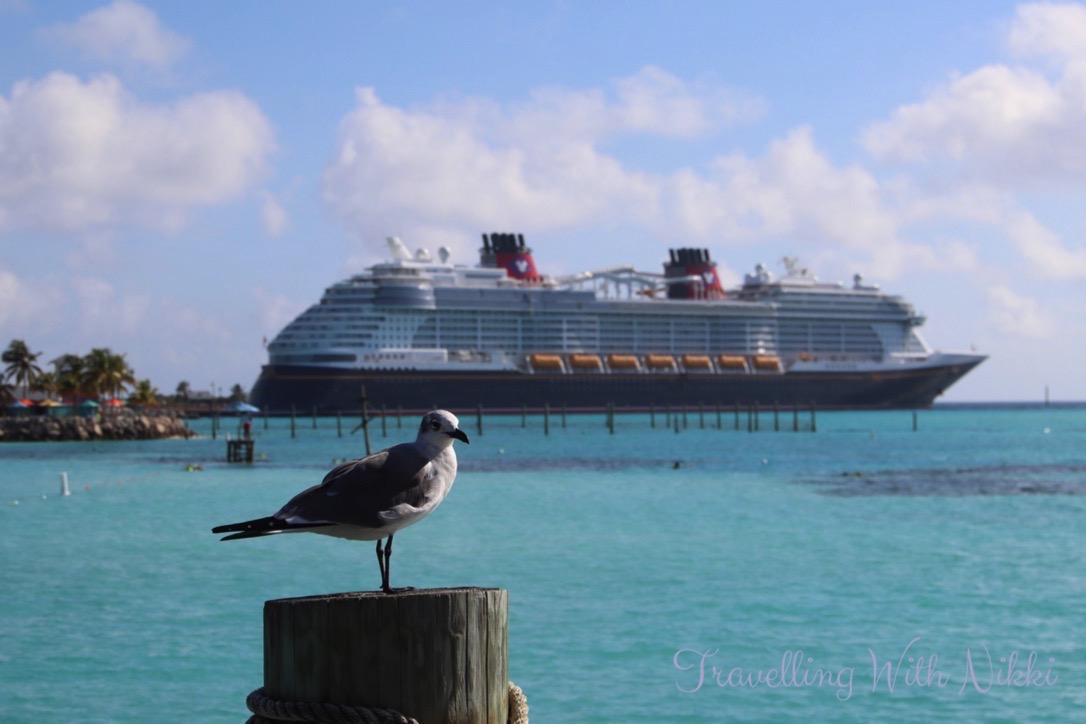One of our favourite things to do at Castaway Cay is to get a cocktail at the Head’s Up Bar and just sit in the sunshine (or under an umbrella in the shade) and enjoy the amazing view overlooking the snorkelling lagoon towards the ship in the distance.