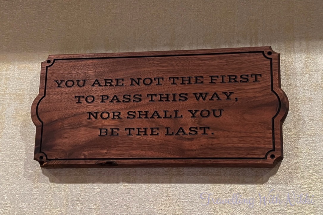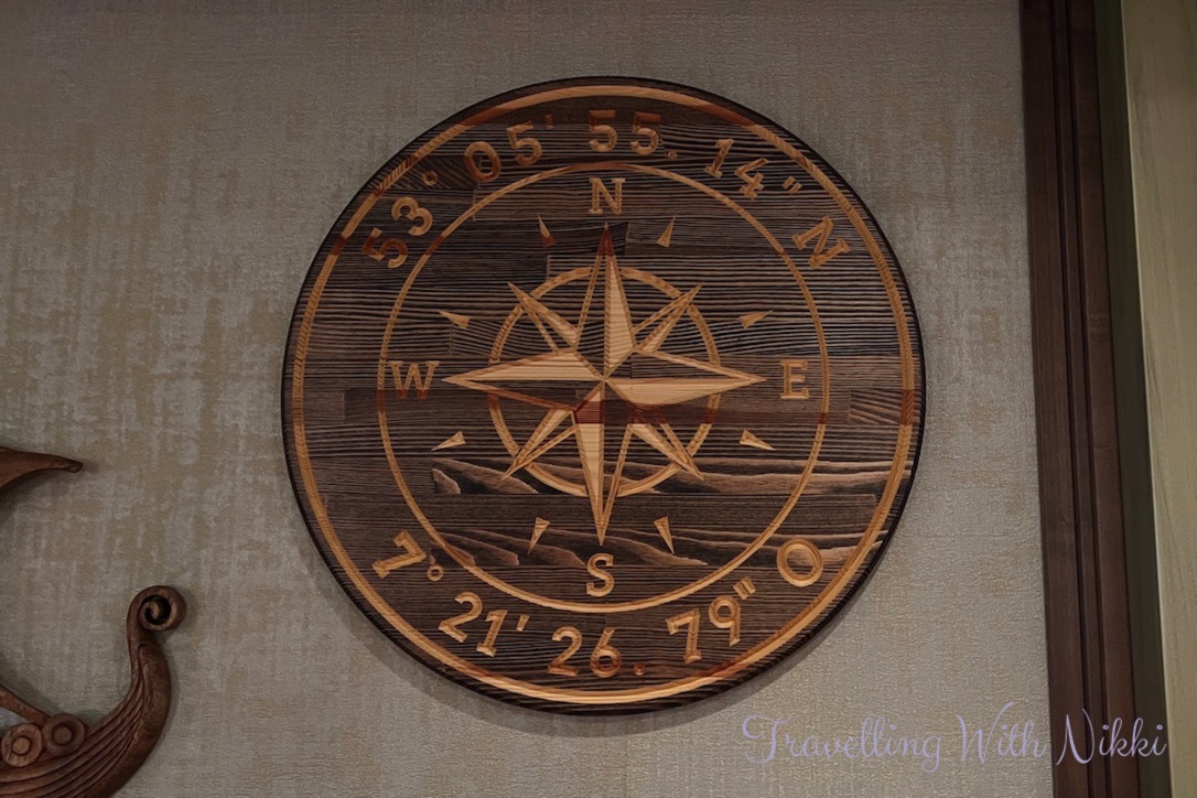 Our next stop of the evening was at the Keg and Compass pub on Deck 5 to finally look at all of the details (some hidden and some not) that we had been told about during our Walking the Wish tour at the start of our cruise a few days earlier. The design of the Keg and Compass is inspired by an 1800’s Norwegian sailor’s map room and on the wall is a wooden plaque that reads “You are not the first to pass this way, nor shall you be the last” which is from the old Maelstrom ride (now Frozen Ever After) which was located in the Norway Pavilion at Epcot.