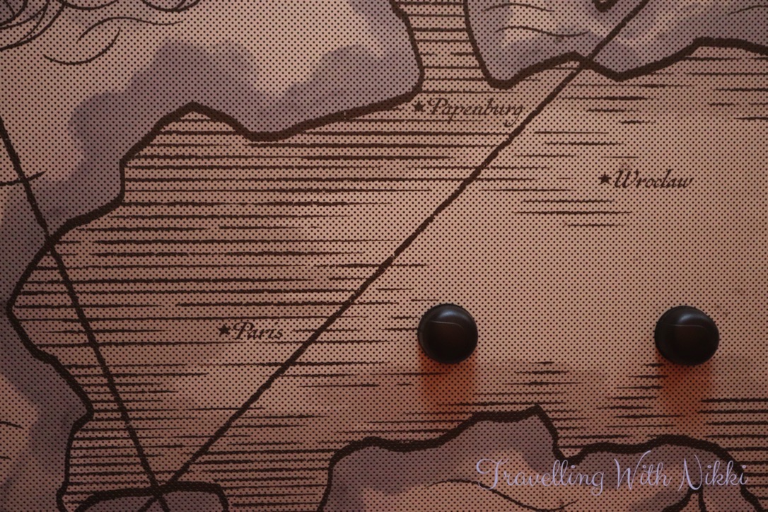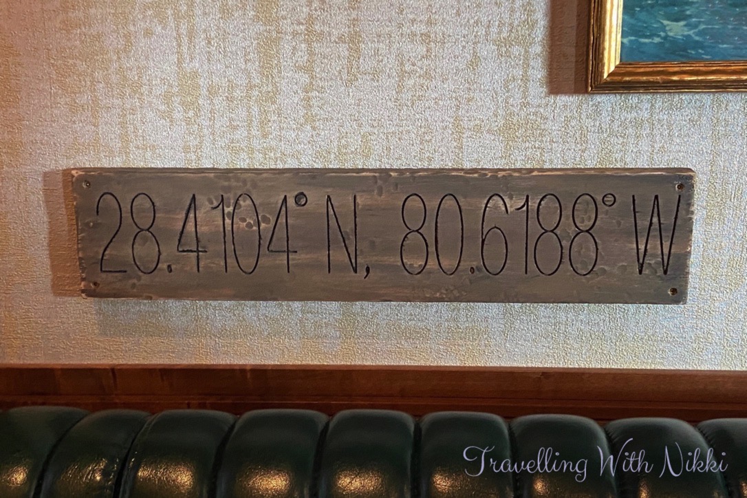 There are also another two plaques on the walls displaying different map coordinates which are actually the exact locations of Port Canaveral as well as Papenburg in Germany where the Disney Wish was built.