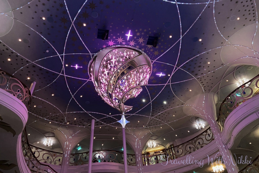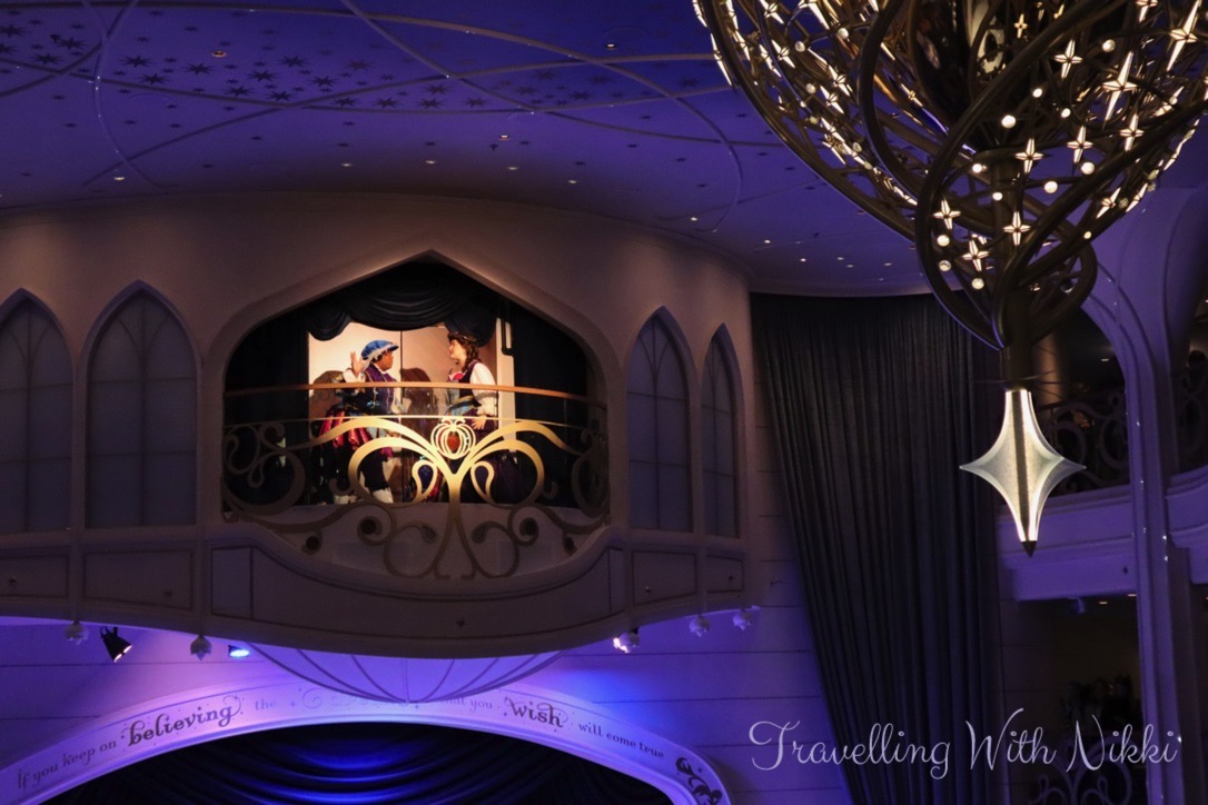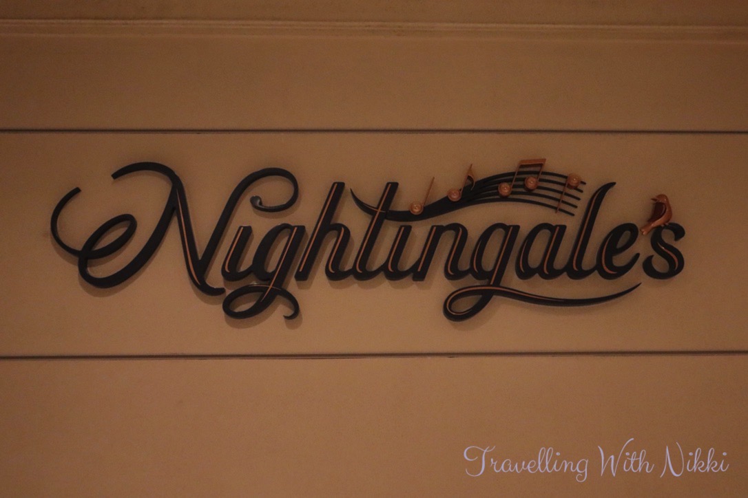 As the ship was very quiet due to the majority of people onboard either being at dinner or watching Aladdin in The Walt Disney Theatre, it was the perfect time to visit Nightingale’s on Deck 3 which was completely empty at this time. Nightingale’s is a piano bar inspired by the scene from the film where Cinderella sings “Sing Sweet Nightingale” as she works.