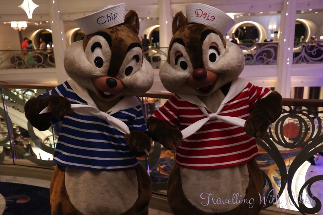 Nightingale’s was a lot busier when we left so we walked into the Grand Hall to meet Chip and Dale who were due out on Deck 4 at 8:00pm and there was a long line to meet them as this was only the second time that we had seen them out during this cruise. We also watched the Fairytale Players for a few minutes and another thing that I noticed which I absolutely loved was one of the songs that was played in the background throughout the Grand Hall was an instrumental version of “Together We Set Sail” which was featured in the Christening ceremony of the Disney Wish and which I had been singing ever since and made me smile every time that I heard it whilst we were onboard!