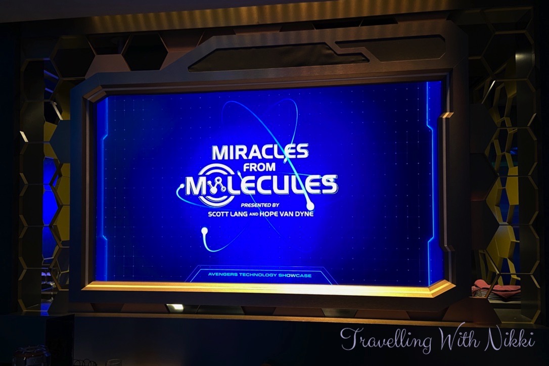 During the Avengers: Quantum Encounter dinner, Scott Lang and Hope Van Dyne aka Ant Man and the Wasp host a presentation called Miracles from Molecules showcasing Pym Tech and the latest Quantum Core technology that can shrink and grow different items at the push of a button. I also noticed that they were hosting their presentation from the Marvel Super Hero Academy which is located in the Oceaneer Club on Deck 2 which I was looking forward to exploring during Open House the following day as I knew there were a lot of details to be found there.
