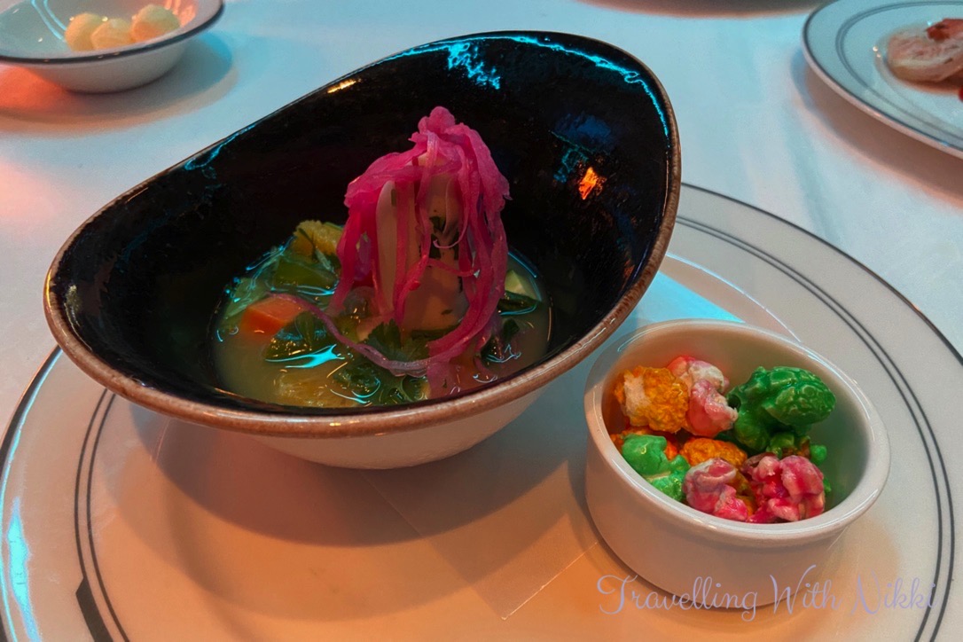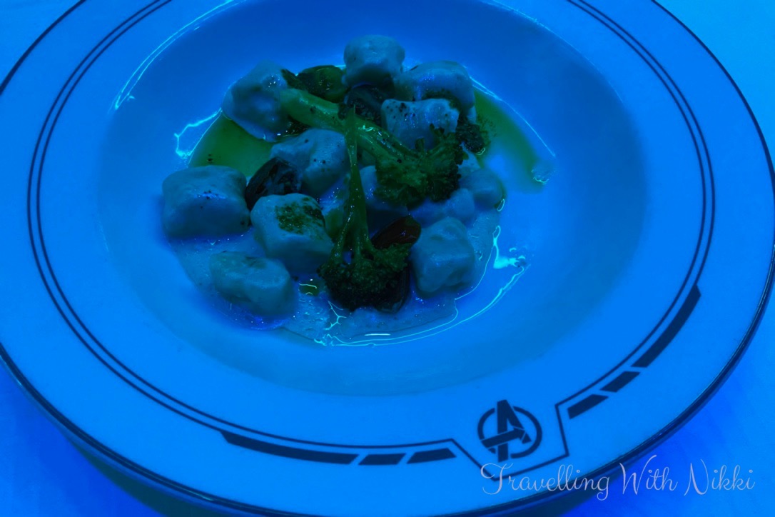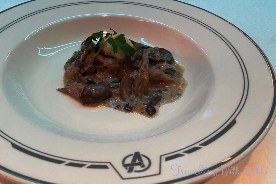 There was so many things that I wanted to try and I was really hungry so to start I ordered the Dill and Meyer Lemon Marinated Shrimp, the Hearts of Palm with Cilantro and Lime (though the Infinity Stone Popcorn it came with was a little strange) and the Sautéed Crimini and Oyster Mushrooms which was so good and is one of the best appetisers that I have ever had in one of the main dining rooms onboard. For my main course I ordered the Ricotta Gnocchi which was delicious.