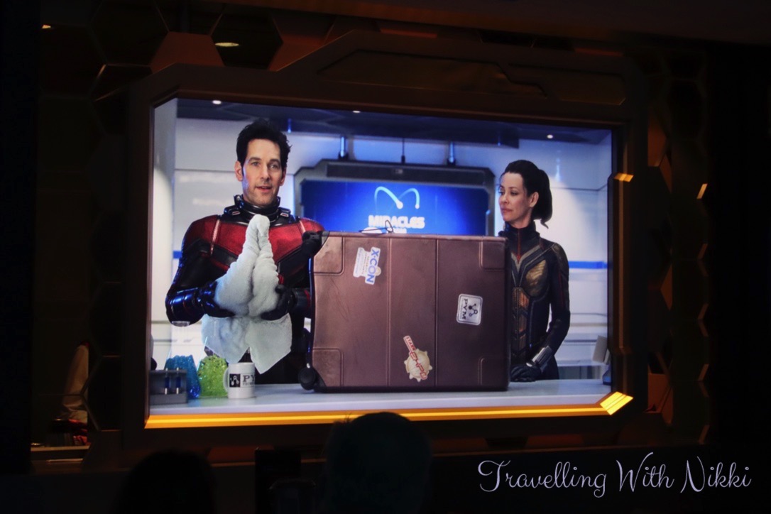 To demonstrate the Quantum Cores that were on each of the tables that can target Pym Particles to shrink or grow just about anything, Ant Man wanted to shrink his suitcase as he could not fit it under his bed onboard the ship as well as shrink his towel swan that he made to make it easier to take home. All we had to do was push the buttons on the Quantum Cores on our tables to activate them but as usual things did not go to plan!