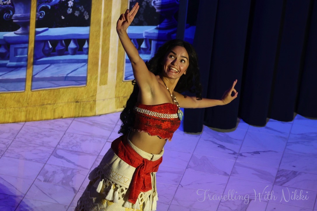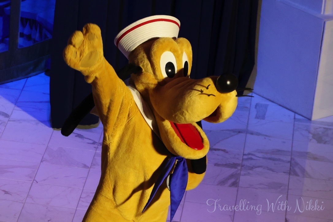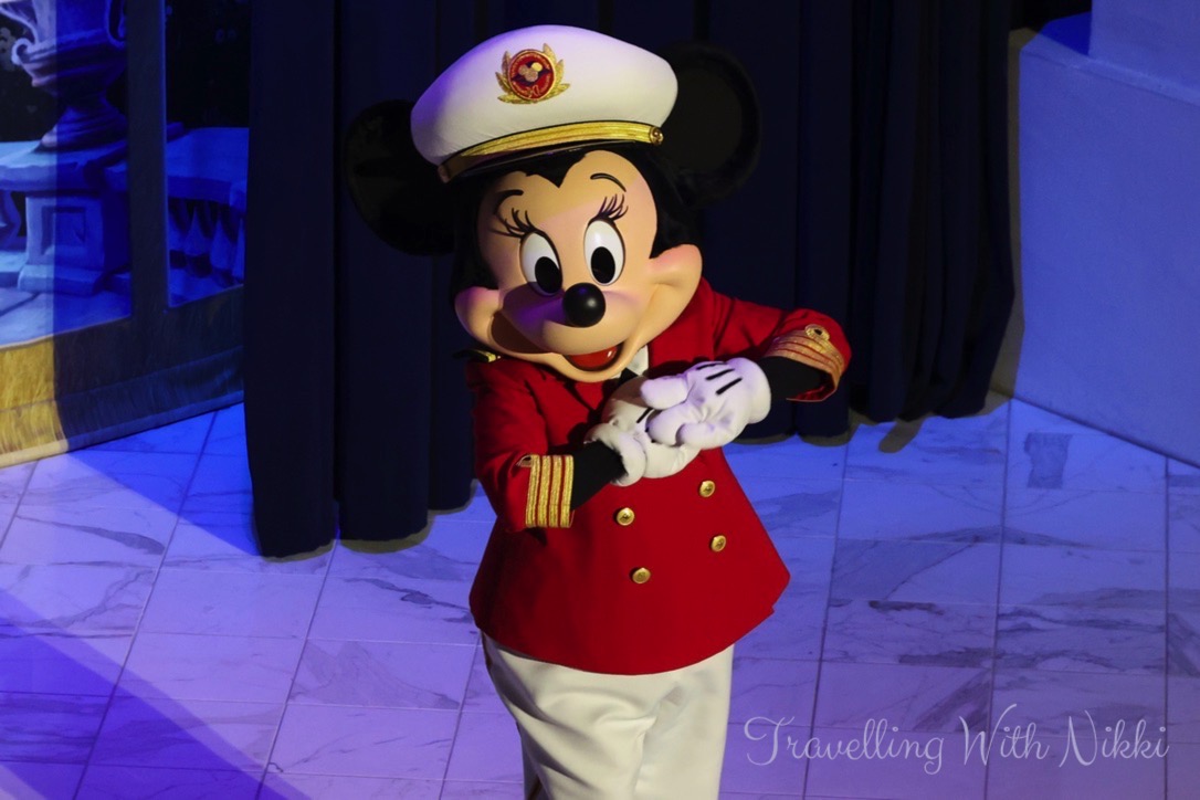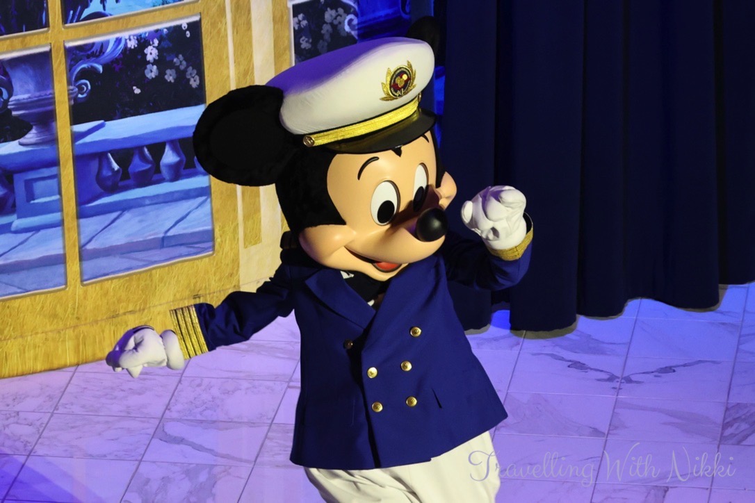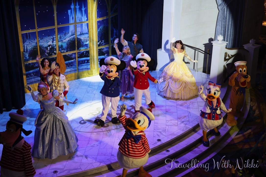 Cinderella and Prince Charming, Rapunzel and Flynn, Belle, Moana, Goofy, Pluto, Donald, Daisy, Captain Mickey and Captain Minnie arrived in the Grand Hall for the final time on this cruise so that you can get any last minute photos with them as there are no character appearances on the morning that you disembark.