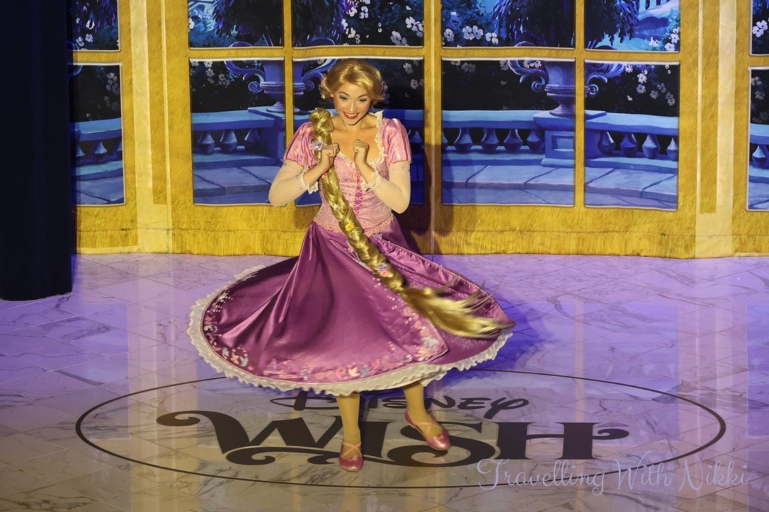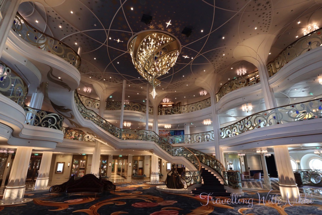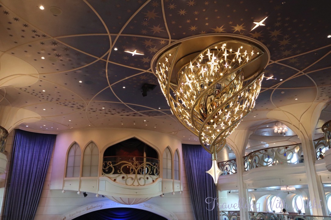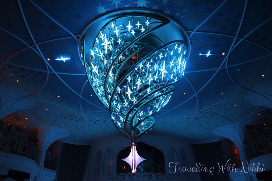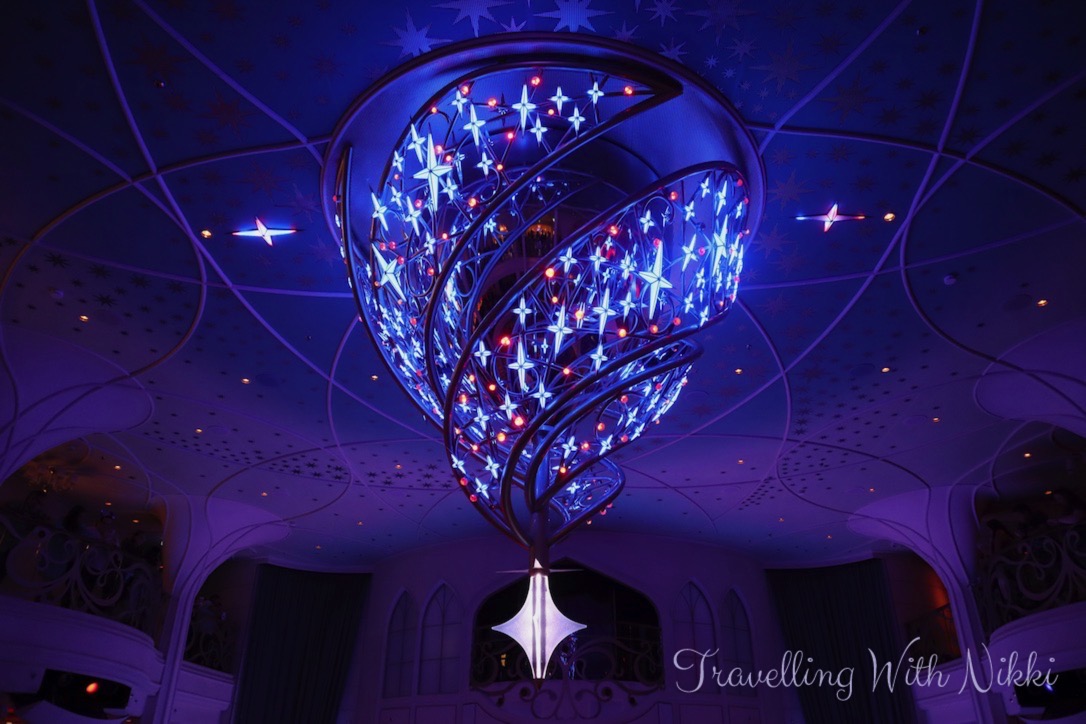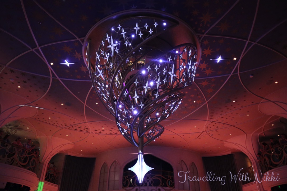 Throughout our week onboard I never once got bored of looking at the Wishing Star Chandelier in the Grand Hall and it was even more beautiful during WISHing Ever After as it changes colour to represent all of the different stories told onboard the Disney Wish!