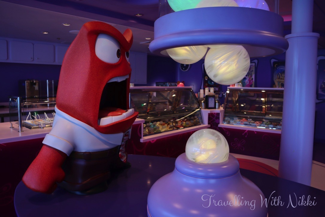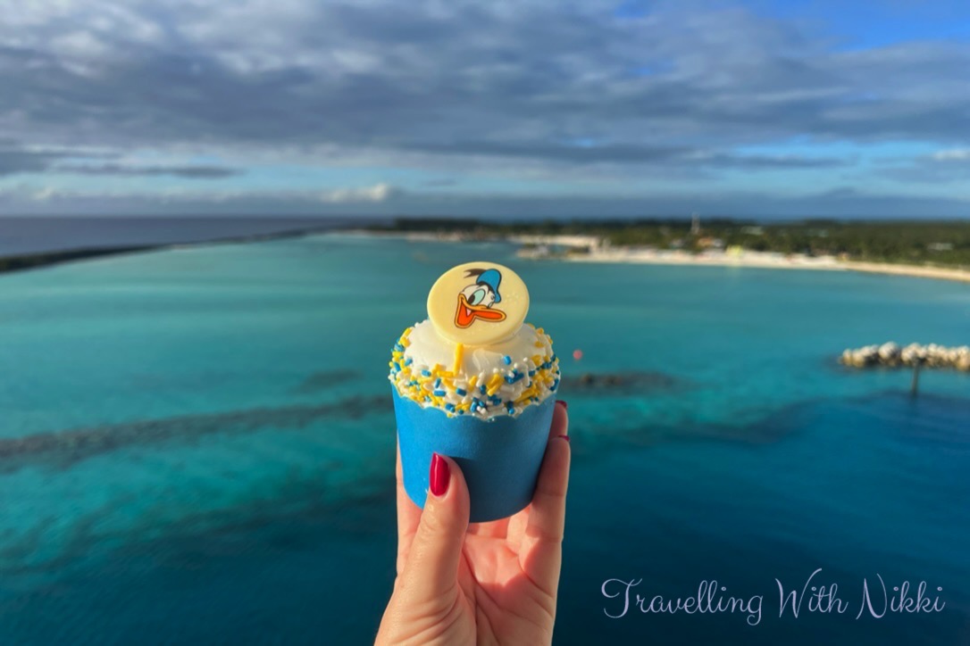 On the way back to our stateroom to get changed ready to head out onto Castaway Cay for the afternoon, we quickly stopped at Inside Out Joyful Sweets as despite walking past it so many times throughout the previous week, we had not even been inside yet. As well as looking at all the details, I also bought a vanilla Donald Duck cupcake to enjoy later that day.