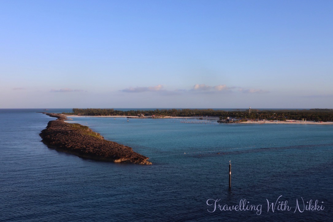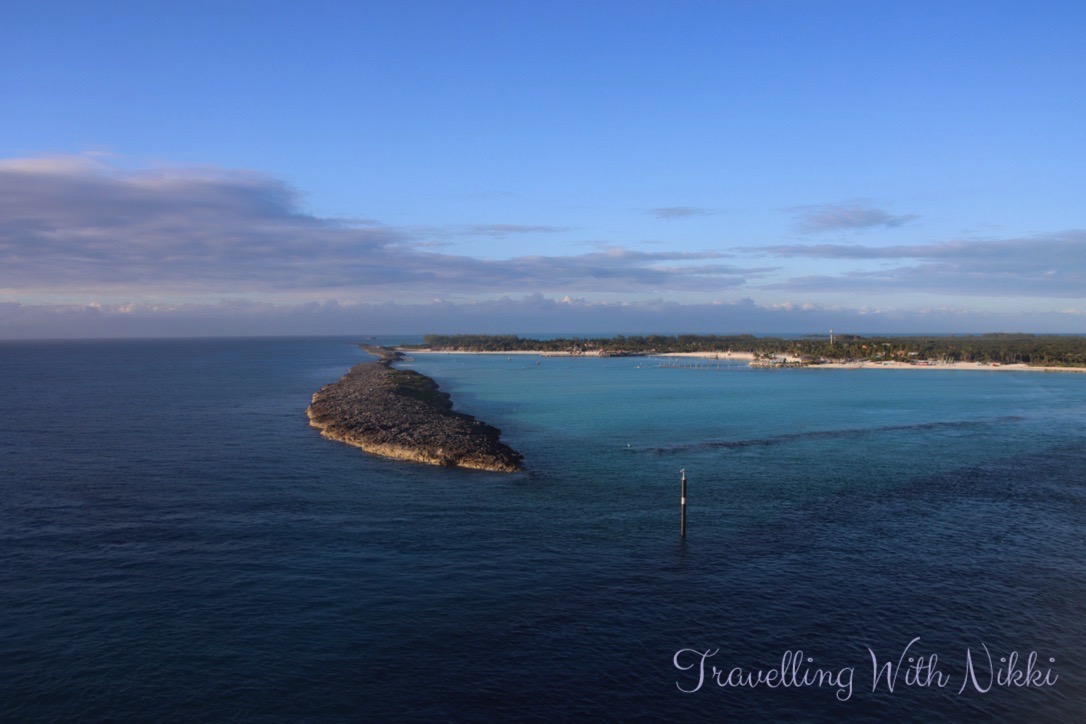 At 7:20am, the Disney Wish started to slowly turn in the water ready to back into the dock and as our stateroom was on the starboard (right) side of the ship, we had the perfect view of Castaway Cay. The sea was so calm that morning (even more than it had been a few days previously) and the When You Wish Upon a Star horn was blasted at 7:50am to signal that we had docked.
