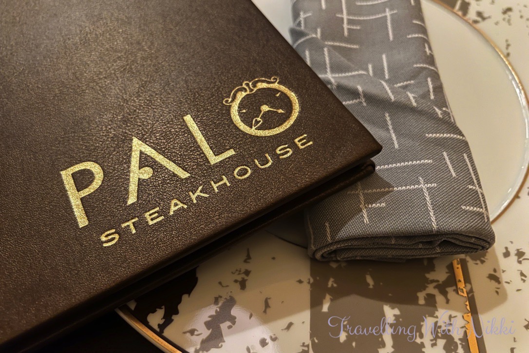 We were shown to one of the alcove tables in the restaurant and introduced to Gaetano who was our incredible server for the evening. Dinner at Palo Steakhouse costs $45 per person for the Prix Fixe menu (which has very limited choices) or you can also order individual items from the á la carte menu. However as this was our first cruise as Platinum Castaway Club members (it still feels very strange to say that) one of the benefits was a complimentary dinner at Palo where you each receive a $45 credit that will cover the Prix Fixe menu or can be used towards your choices from the á la carte options.