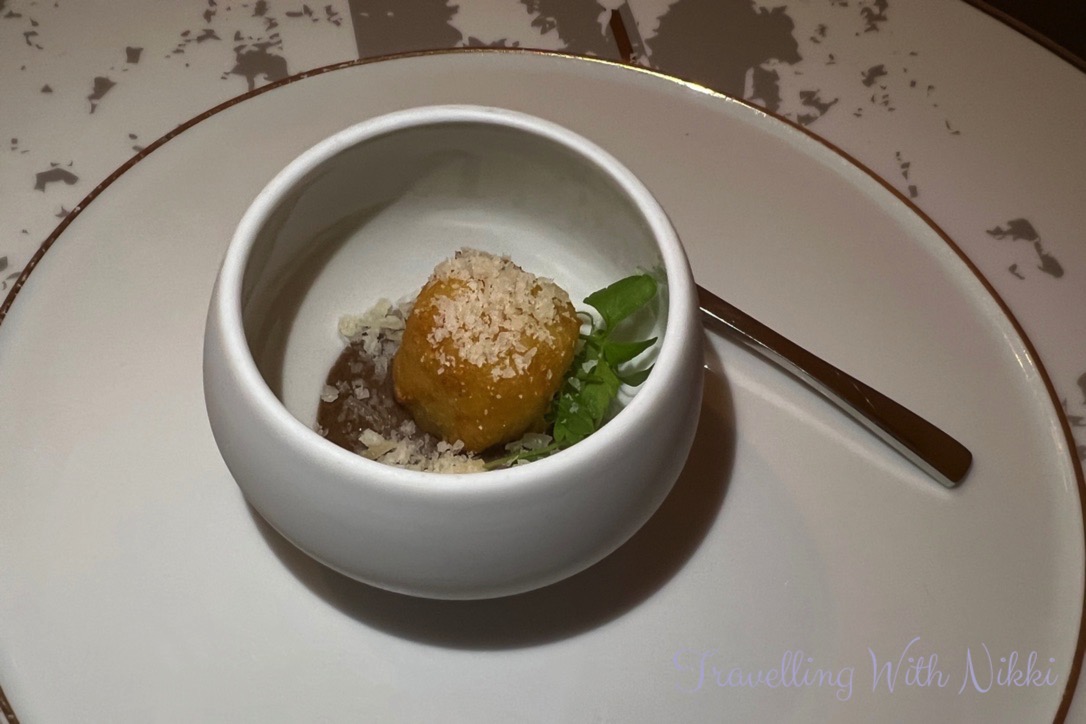 Our dinner started with a beautiful Gnocchi amuse-bouche (I was already in food heaven as I absolutely love any form of Gnocchi) and Gaetano also brought a basket of amazing freshly baked bread to our table and we also ordered a bottle of San Pellegrino to drink.