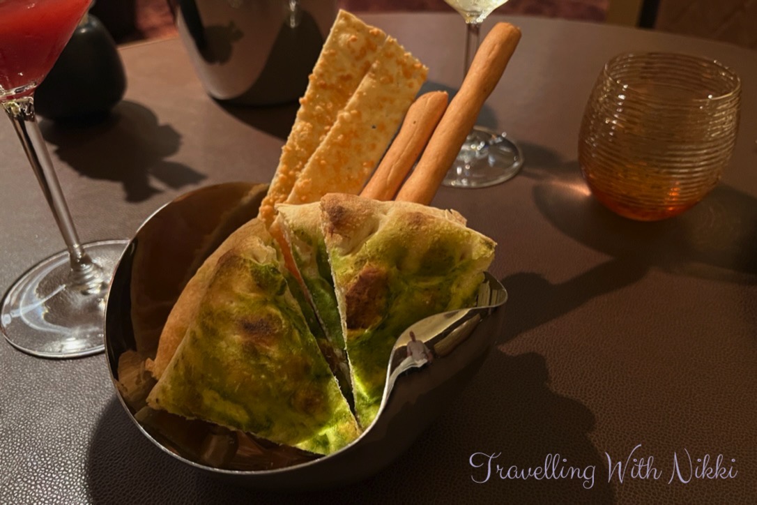 We arrived at The Rose a few minutes early as we both wanted to have a cocktail before dinner. I ordered the “Plant and Fleurs” which was made with Grey Goose VX, Vanderpump Rosé and Blackberry which was absolutely delicious. Considering how busy it was everywhere else on the ship, it was truly an oasis of calm in The Rose and booking both Enchanté as well as Palo Steakhouse for dinner on two nights of our three night Disney Wish cruise was one of the best decisions that we have ever made.