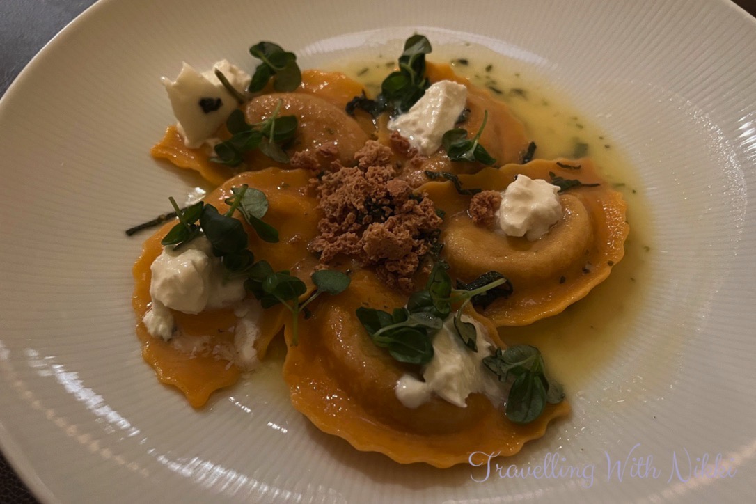 Despite seeing it on the menu so many times before on our previous cruises I had also never tried the Butternut Squash Agnolotti with Sage Brown Butter and I now wonder why it took me so long as it tasted heavenly and I already know that I will want to order it straight away on our next cruise. We also got the Soft Potato Gnocchi to share and even though it was delicious, I preferred the Gnocchi from our previous dinner at Palo on the Disney Wonder last year as the sauce was completely different and even better.