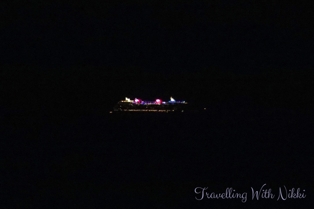 Trying to take a photo of a moving ship from another moving ship at night is difficult but we had to laugh as when we had sailed onboard the Disney Dream last year, we saw the Disney Wish out at sea one day and now it was the opposite way round!