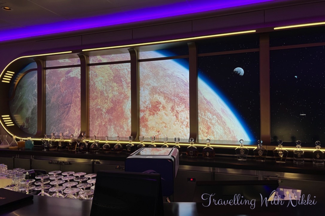 Even though it would be some peoples first stop onboard, we realised all of a sudden that we had not been in the Star Wars Hyperspace Lounge all week (none of the cocktails had sounded good when we had looked at the menu on the Disney Cruise Line Navigator app) so we quickly walked down to Deck 3 to have a look around.